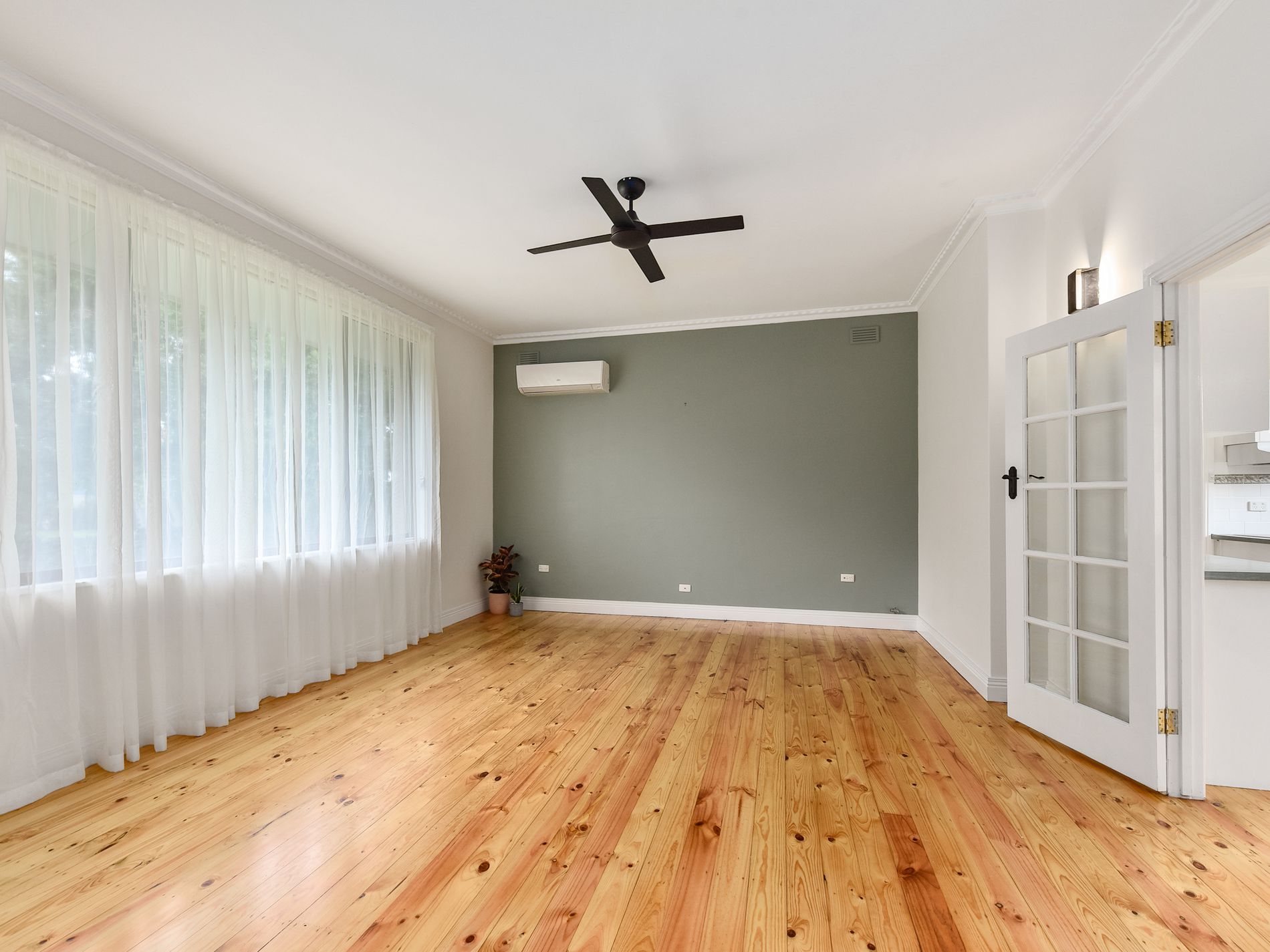 Through French doors to your left is the formal lounge with freshly finished timber floors and a second set of French doors that open the room to the kitchen, dining area.