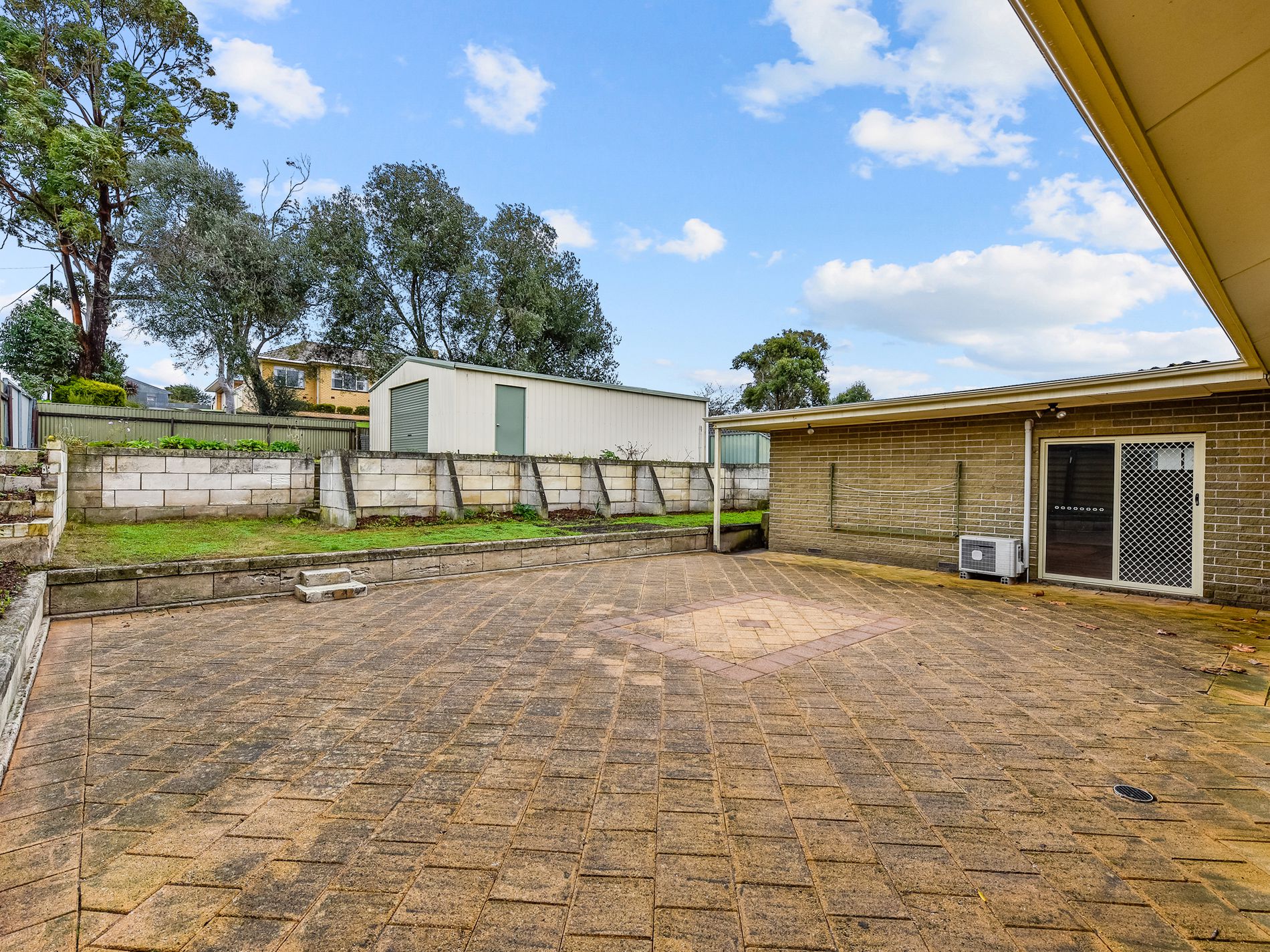 At the rear of the home is the huge rumpus room and massive third bedroom, this could be easily converted into two bedrooms or used as a teenagers retreat. New timber look floating floors have been installed and a gain fresh paint makes the room light and inviting. A sliding door from this space leads out to a large paved area ideal for entertaining and the rear yard. Steps at the rear lead to the four bay shed with roller door access off of the rear street.