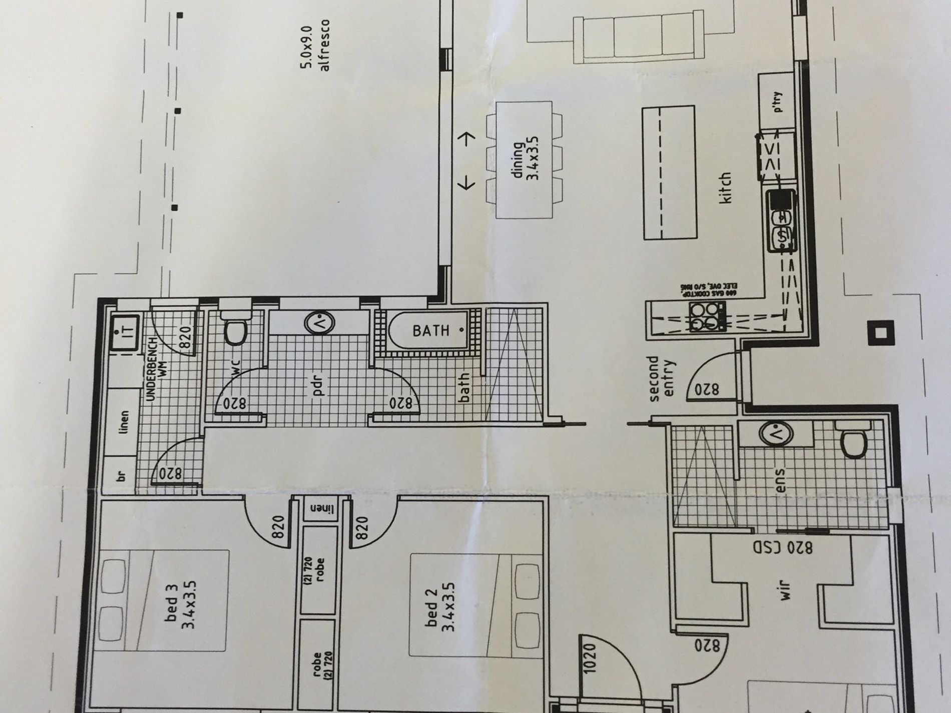 Island breakfast bar, Dishwasher, Elect H/P's, under bench elect oven and pantry.