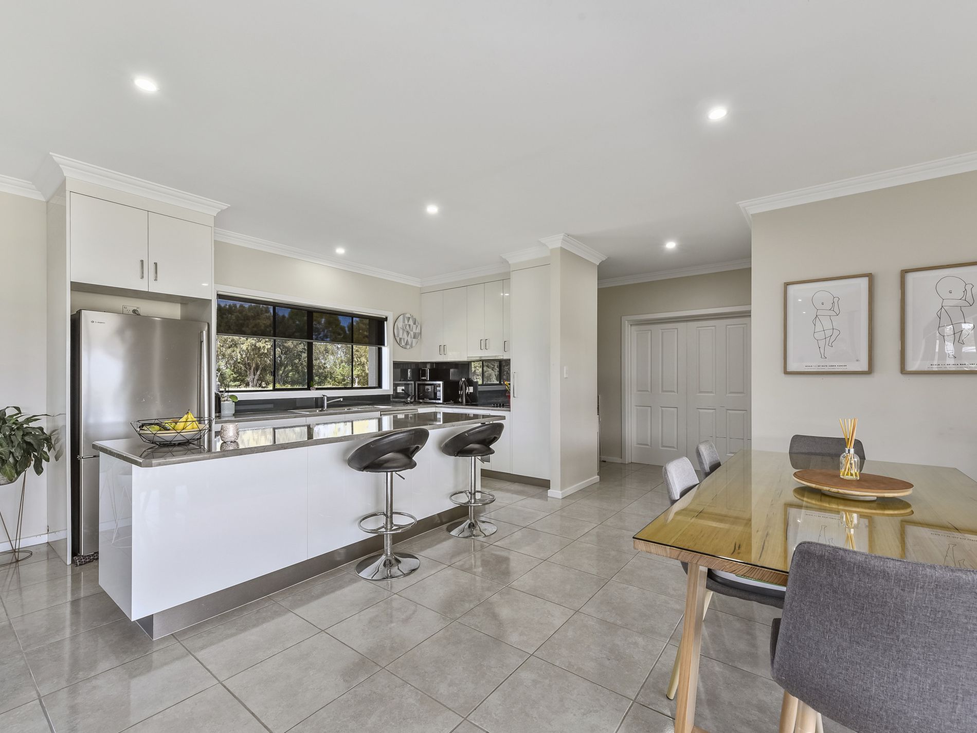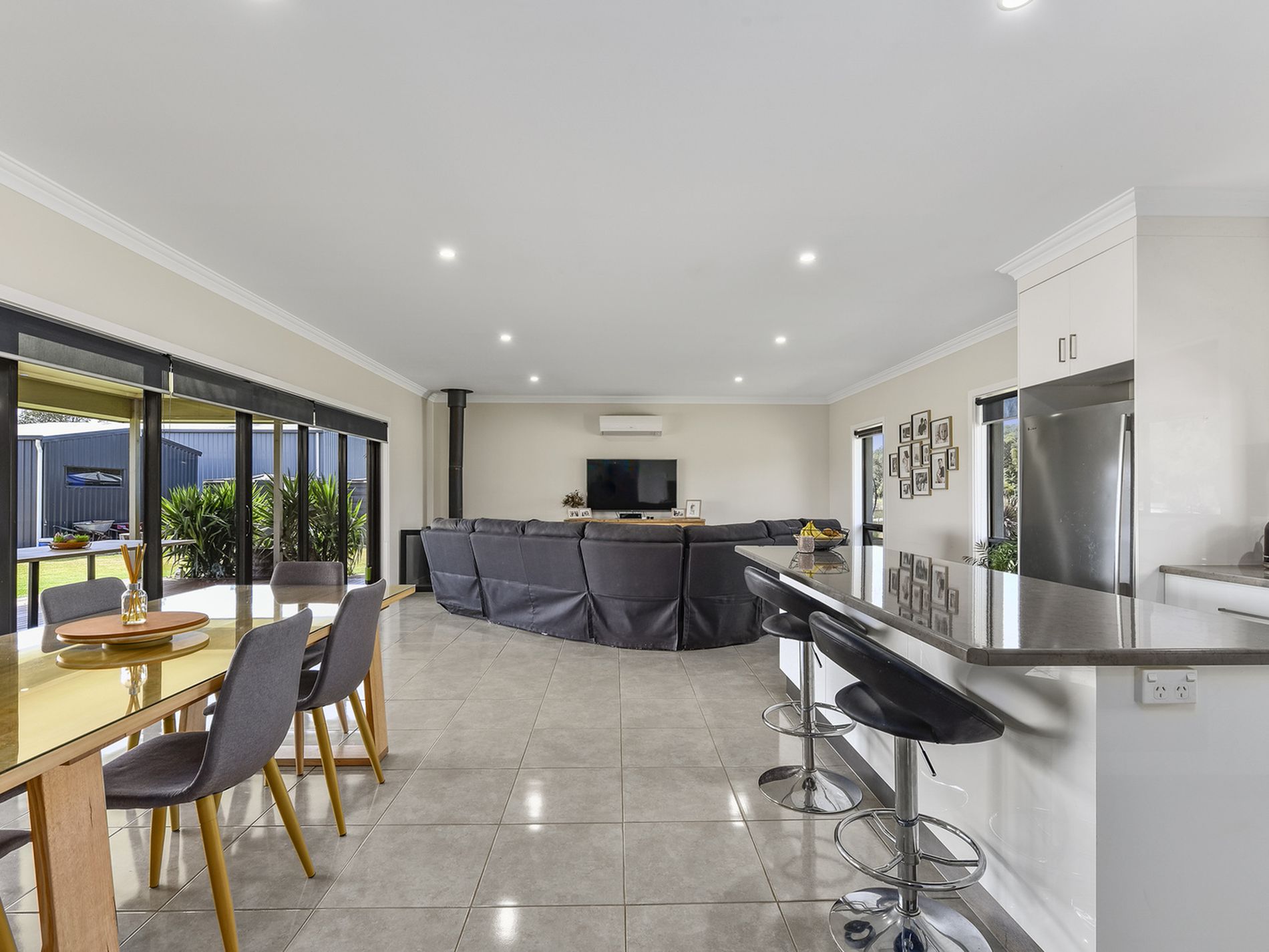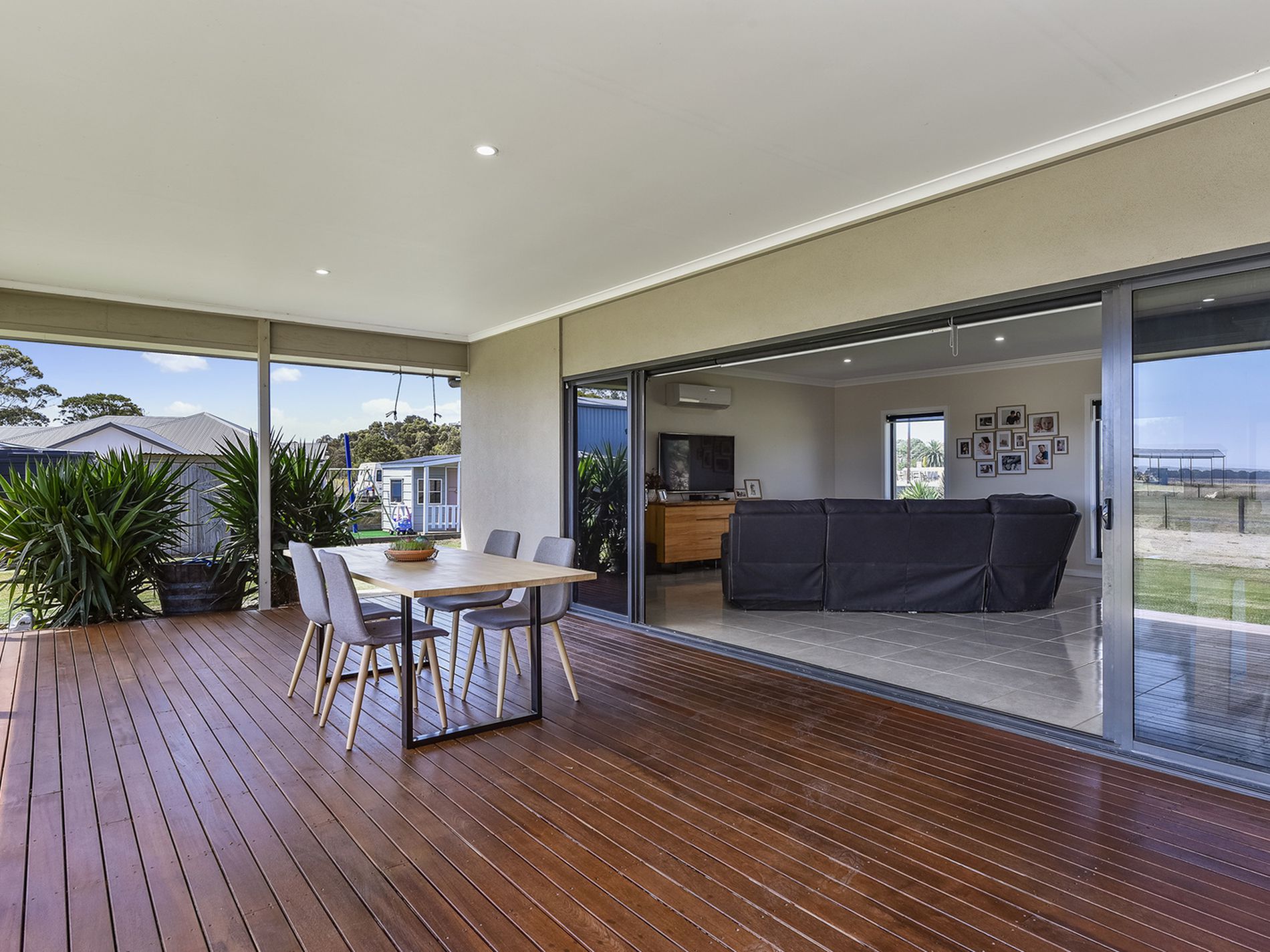 Open the sliding stacker doors and let the outside in to the fabulous, decked entertainment pergola with built-in BBQ kitchen area.