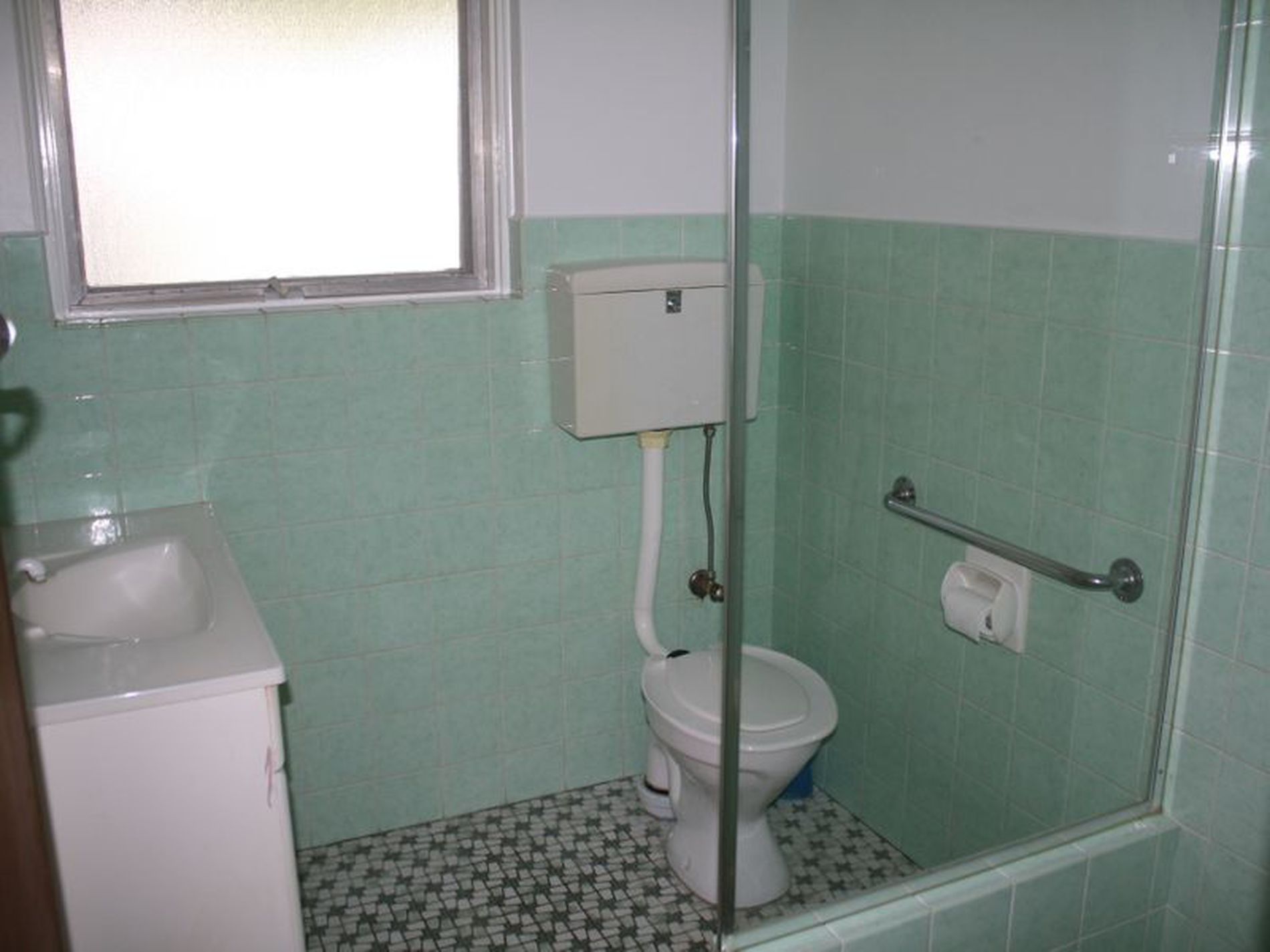 Toilet and shower in the bathroom. Brand new electric HWS installed.