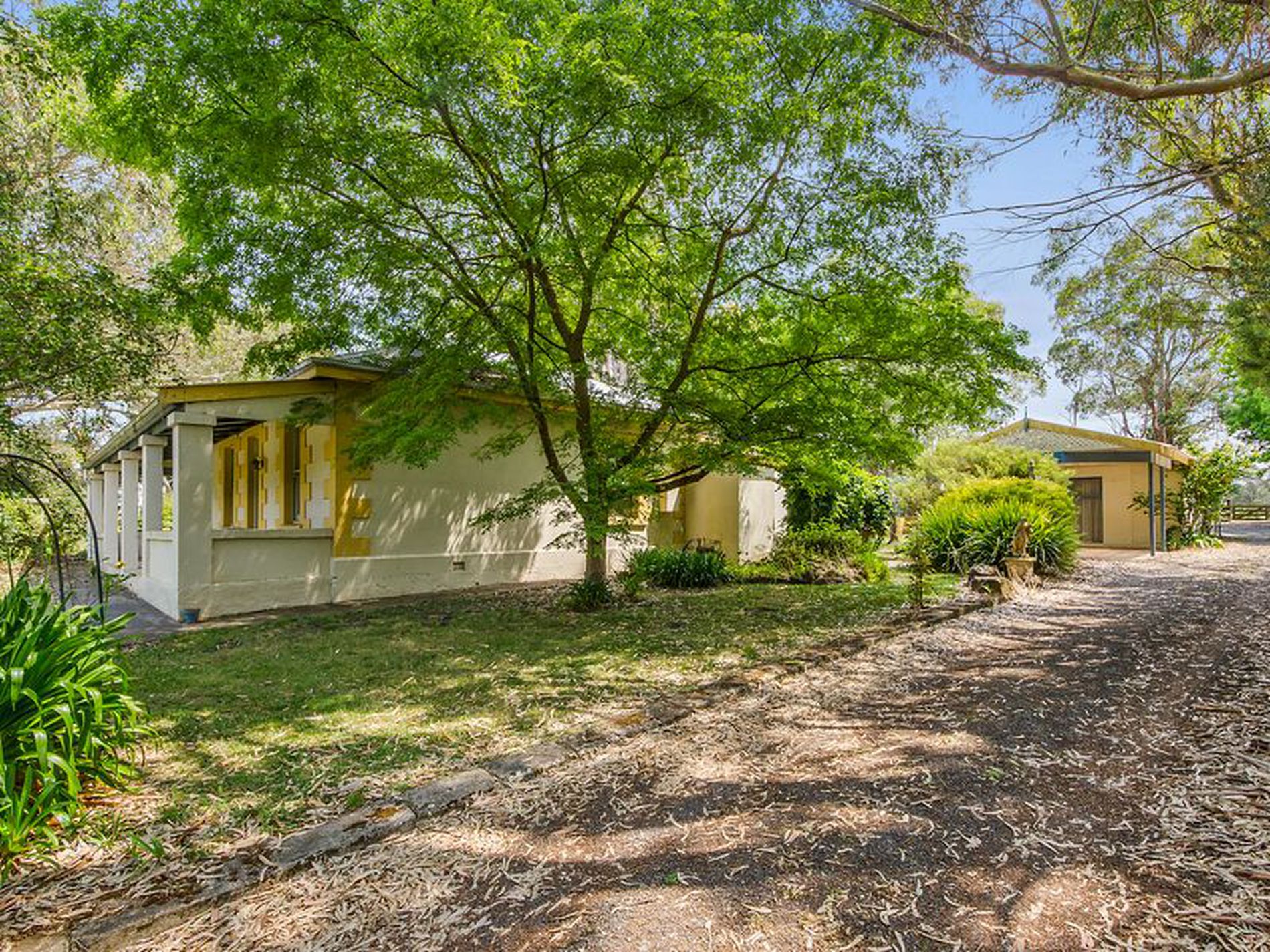 An abundance of shedding to utilize. From the huge high clearance [12ft] 4 bay roller door galv shed, with front undercover carport across the full 4 bays. Stone car shed and additional wood sheds