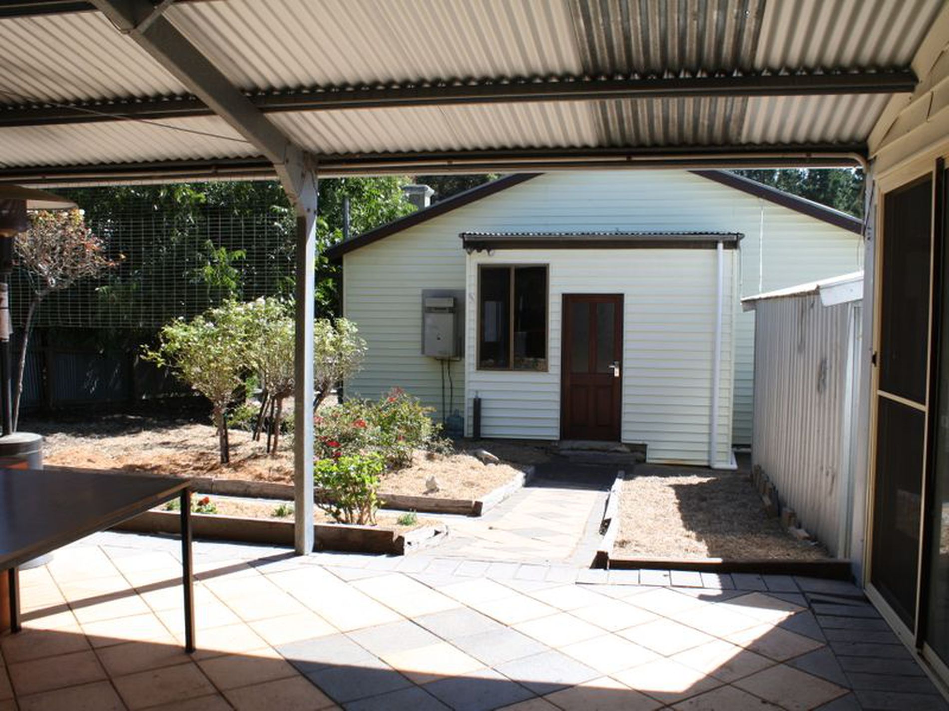 No grass to worry about out the back. fully paved and garden beds leading to the pergola and new gates to the rear of the property