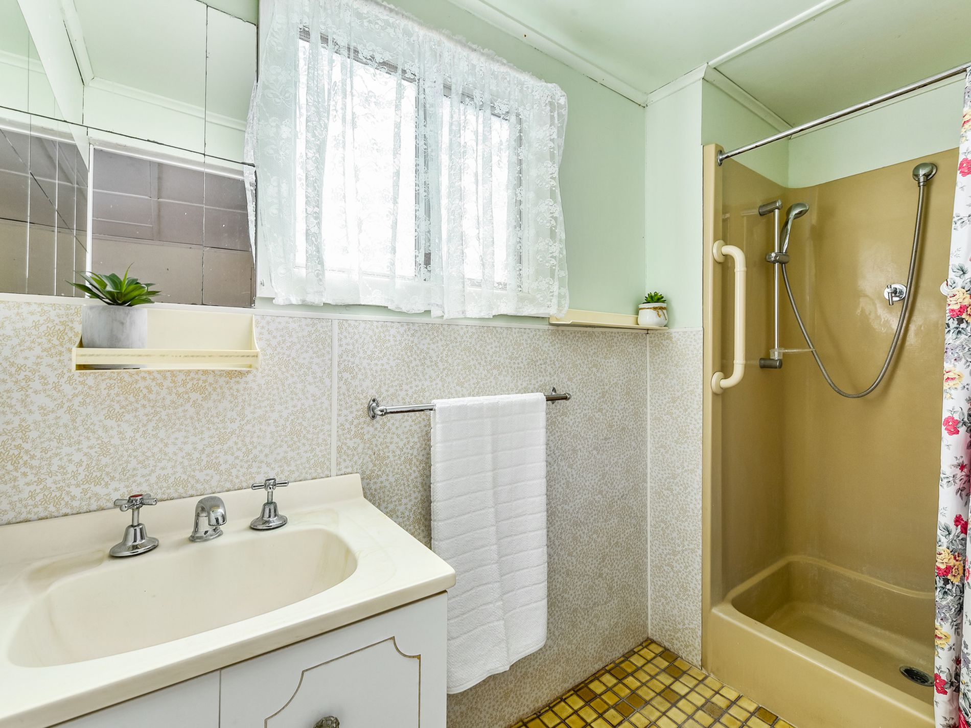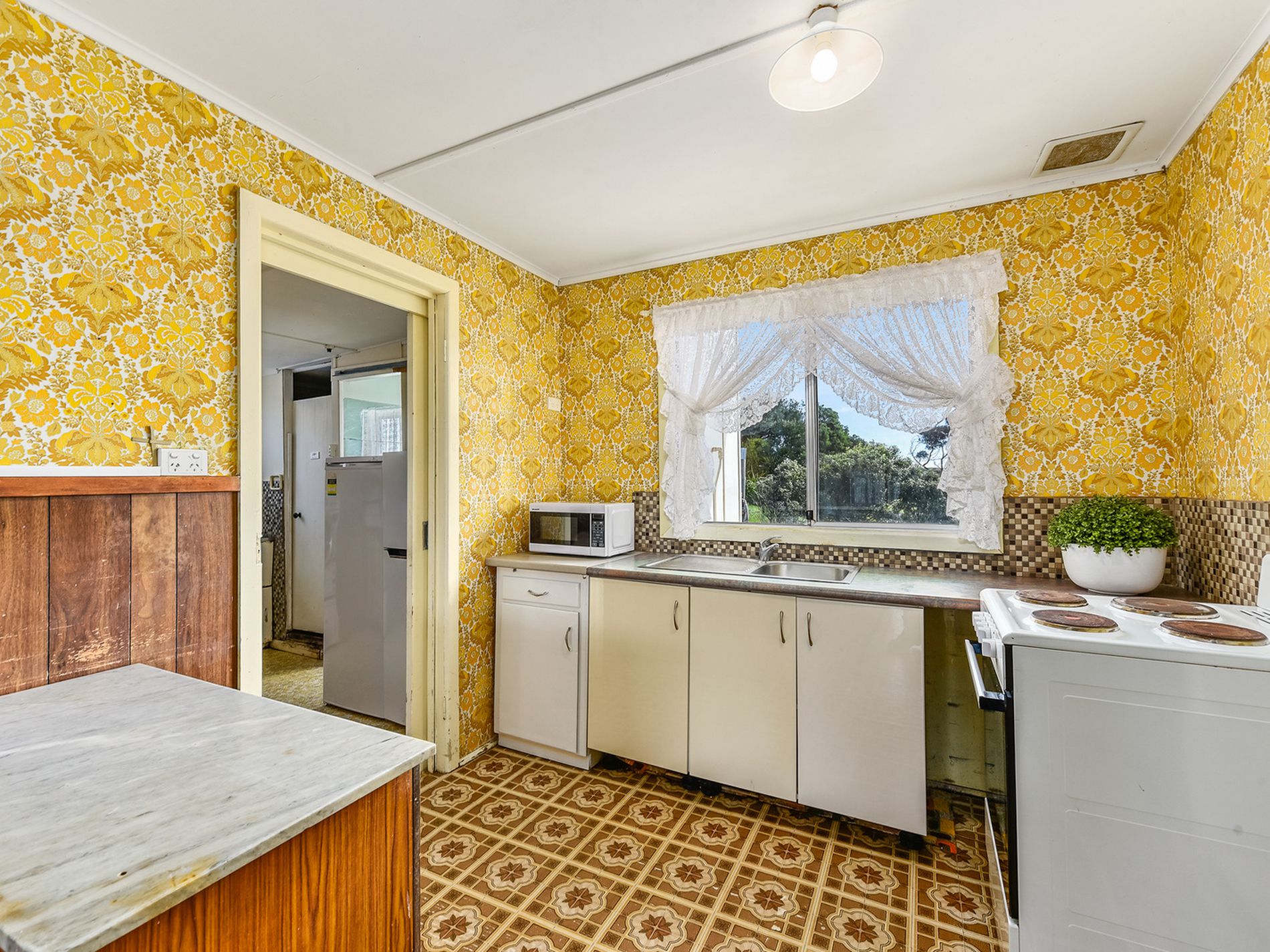 Here you have an open area of kitchen, meals, sitting room. The floor is vinyl, cooking is electric and there is a single sink. An external door from here leads out to a porch and flat lawn area. A perfect spot to entertain family and friends with fantastic views over the town. To the rear of the home, you will find the third bedroom, bathroom, and laundry. The bathroom has a shower and vanity, and the toilet is separate. A small sunroom finished the house and leads out to the shed and level car pad.