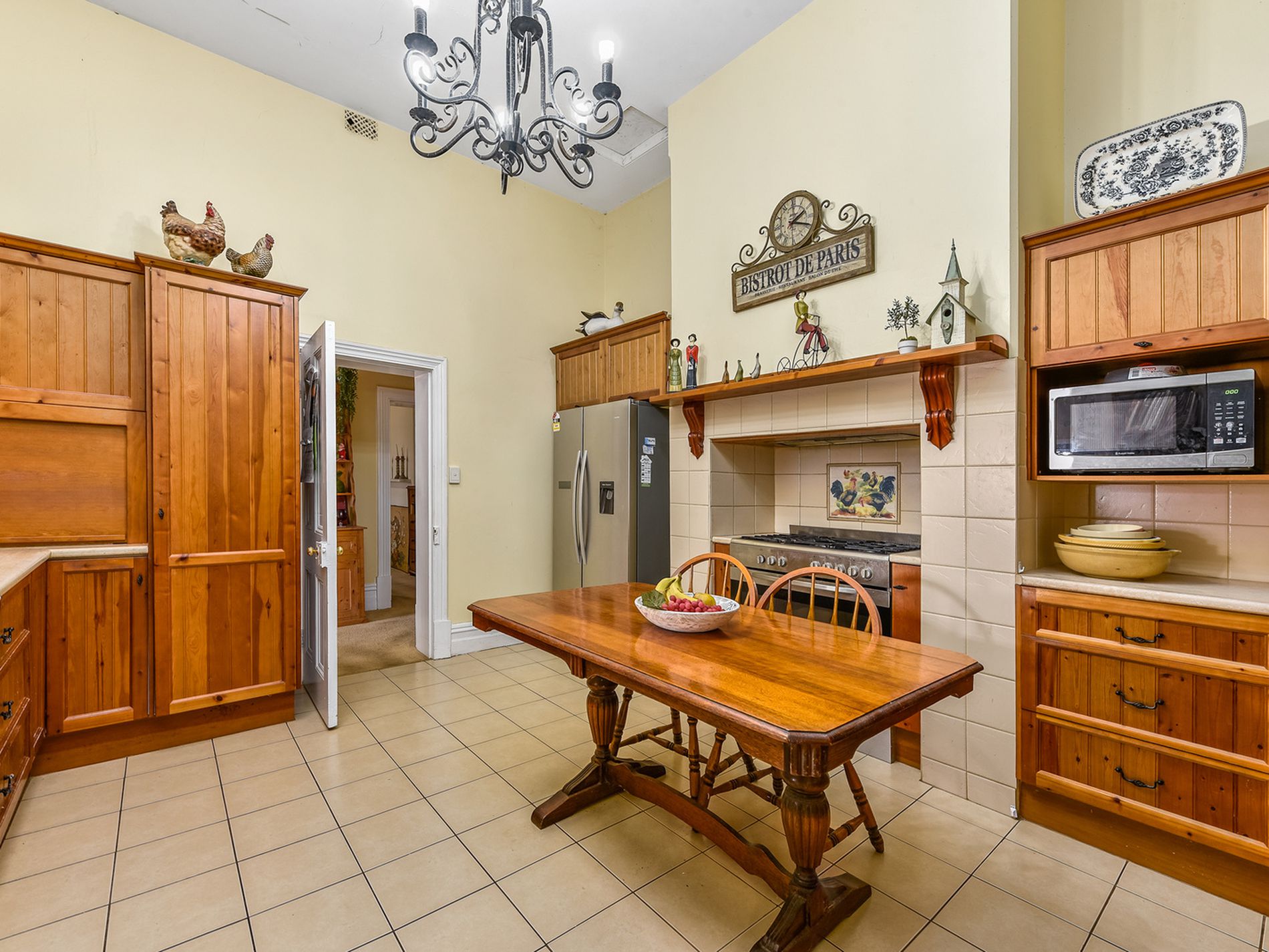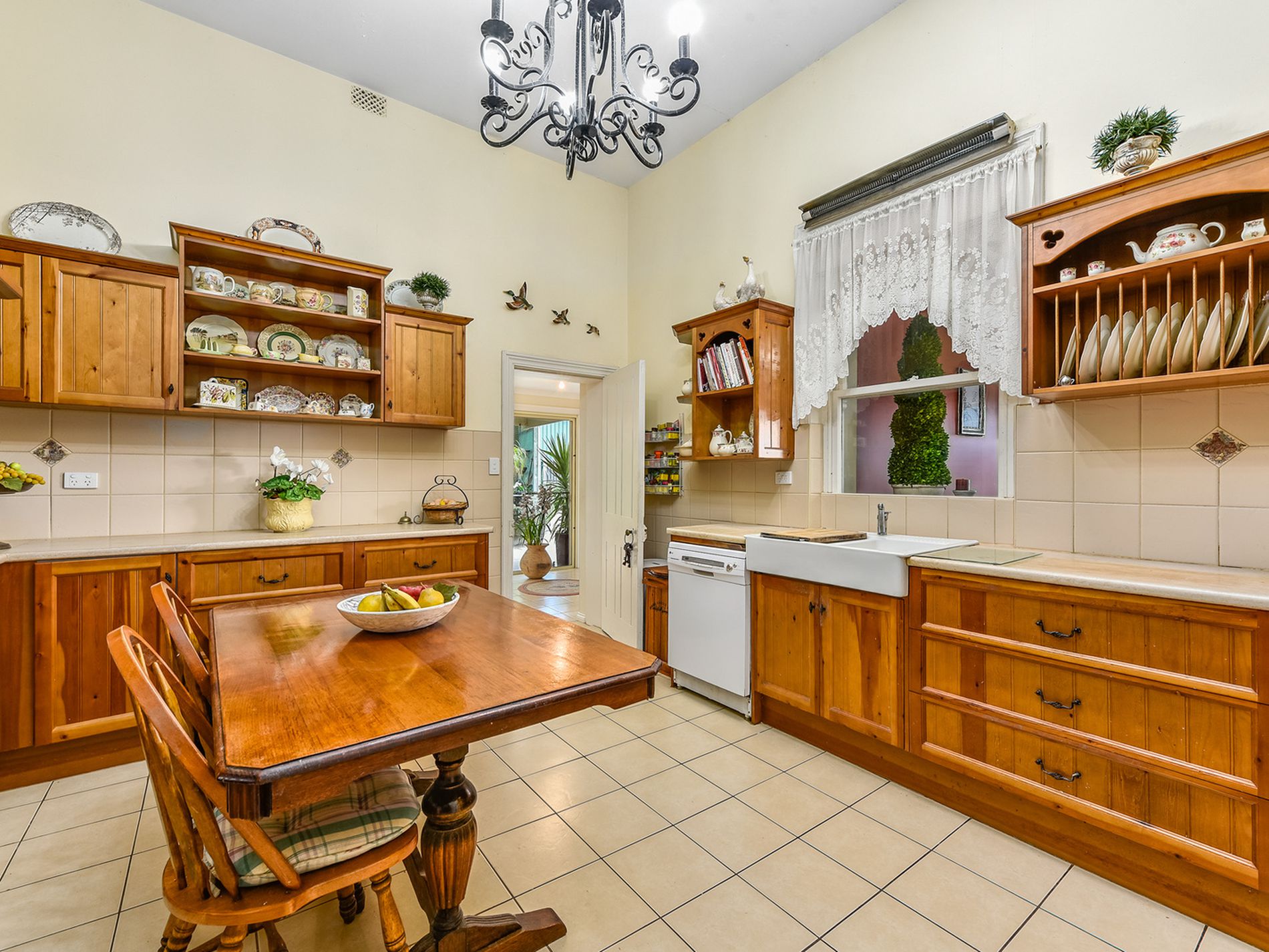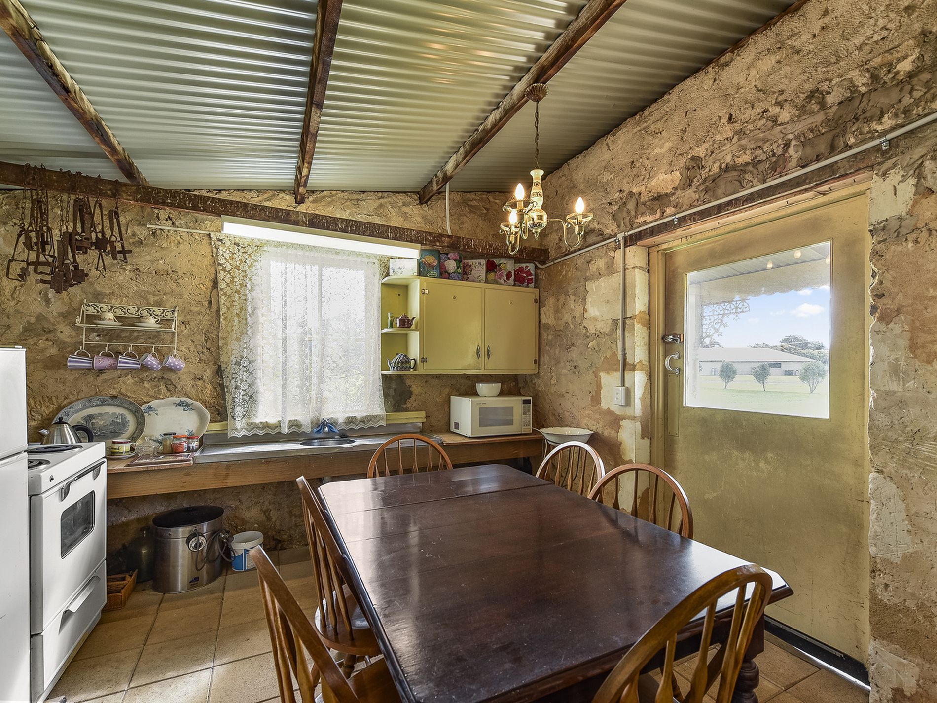 The kitchen is a Blackwood custom design any budding chef will enjoy with an abundance of storage, farmhouse sink, dishwasher, freestanding 900ml cooks oven with electric oven and gas hotplates, pantry and butlers slide breakfast cupboard. The character hasn't been lost here with plate racks and open shelving to display your best dinner set and a wrought iron chandelier to set the scene. A tiled mud room and laundry lead to a generous sized bathroom with corner spa, shower and double vanity. The separate toilet is also off the mud room area.