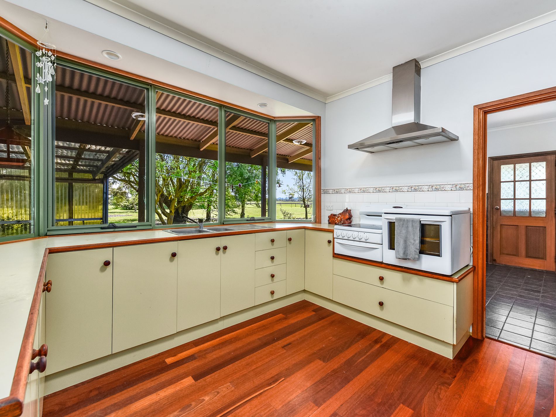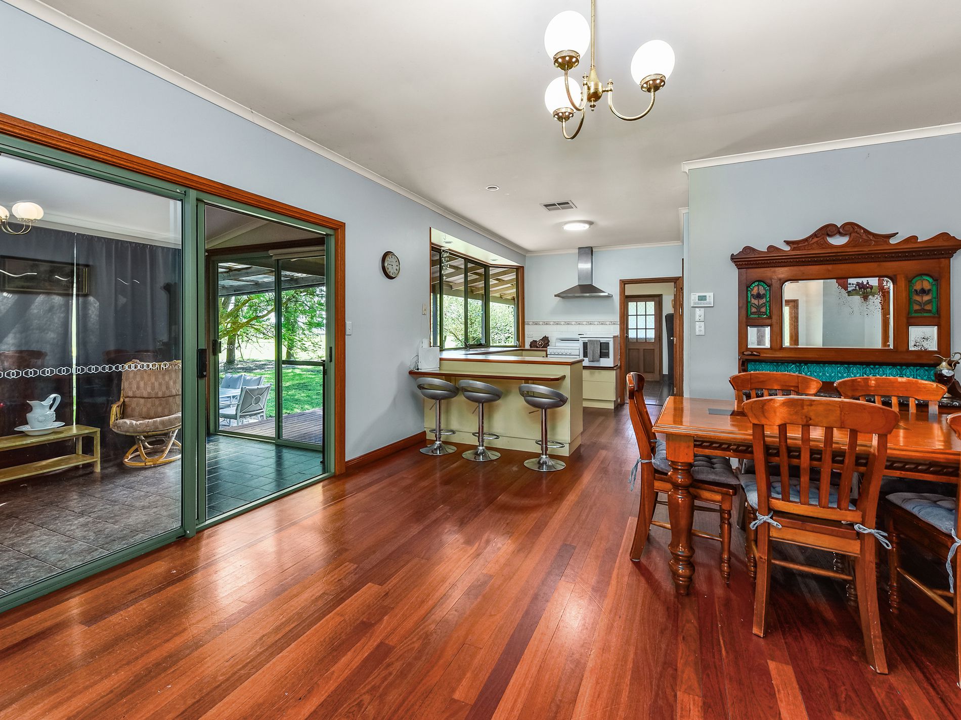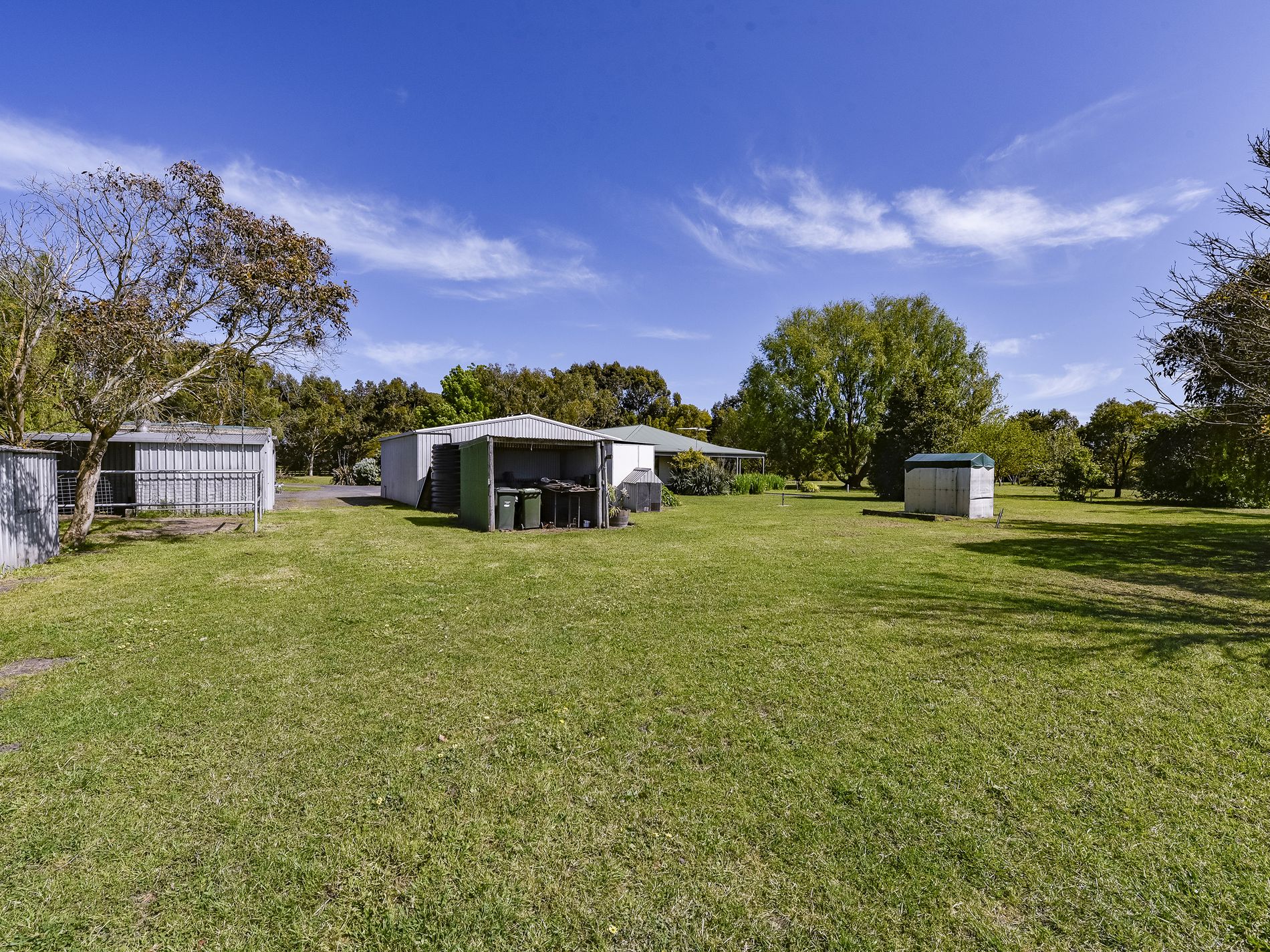 The home has three bedrooms plus an office / fourth bedroom. The master with huge walk-in robe. A newly renovated, large, tiled bathroom has a shower, corner spa bath and vanity, and a separate toilet. There is a large open plan Kitchen, dining and living space with beautiful, feature hardwood floors. A slow combustion heater here heats the whole home and you also have a ducted reverse cycle heating and cooling system for year round comfort. The kitchen has electric cooking and large walk-in pantry to hide away all of the kitchen clutter. You will actually enjoy doing the dishes at the kitchen sink set in a lovely bay window overlooking farmland. A sliding door from the living space leads out to the side entry/sunroom and verandah with steps down to a pergola area which is adjacent an enclosed fern garden. The office/fourth bedroom is also accessed from the sunroom. The shedding is fantastic and every mans dream, a driveway leads to a four-bay iron, open front car shed which joins a lockable workshop and car shed. A second 12m x 12m iron shed also has room for cars plus a full bathroom, storeroom, and an old cool room( not functioning). To the rear of the house yard sits a large hay shed, there is a stable, a tack room / storage room plus a woodshed. Water to the house is rainwater and the yard and paddocks are services by a bore. There are some fruit trees and plenty of space to create an orchard and extensive veggie patch to grow your own produce and become self sufficient. You also have a solar system installed reducing your electricity bills.