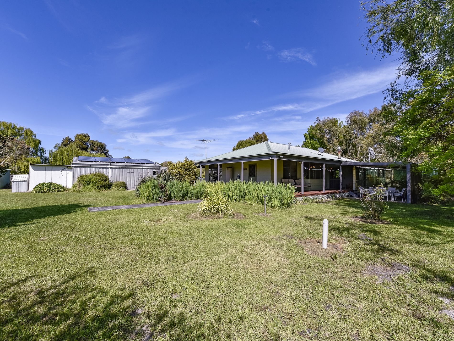 Sitting on 4.05 hectares or 10 acres and fenced into four paddocks, the home is just a five-Minute drive from the town centre of Millicent and twenty minutes from the pristine southeast beaches. . Set back from the road it is in a very private setting surrounded by mature trees and sprawling lawns you cant help but take a breath and relax as you drive up the driveway. The house is a weatherboard / timber construction with an iron roof and a wide verandah on three sides. The property is all set for the horse lover with stables, tack room and secure hayshed or bring the kids, the menagerie of animals, the motorbikes and boys toys and live the dream in the fresh air and rural surrounds.