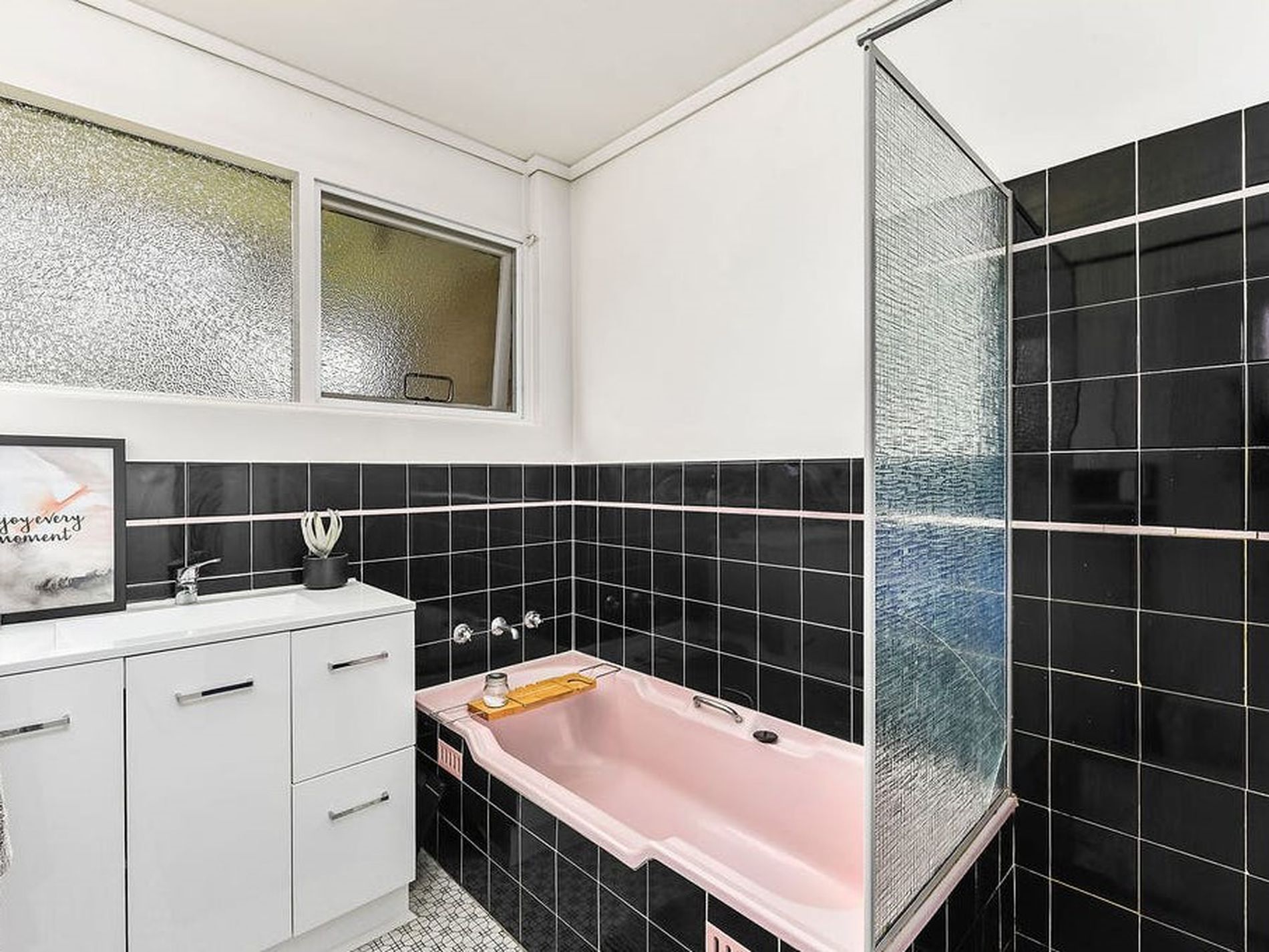 The bathroom has separate bath, shower and vanity. The toilet is separate and a linen press can be found in the hallway.