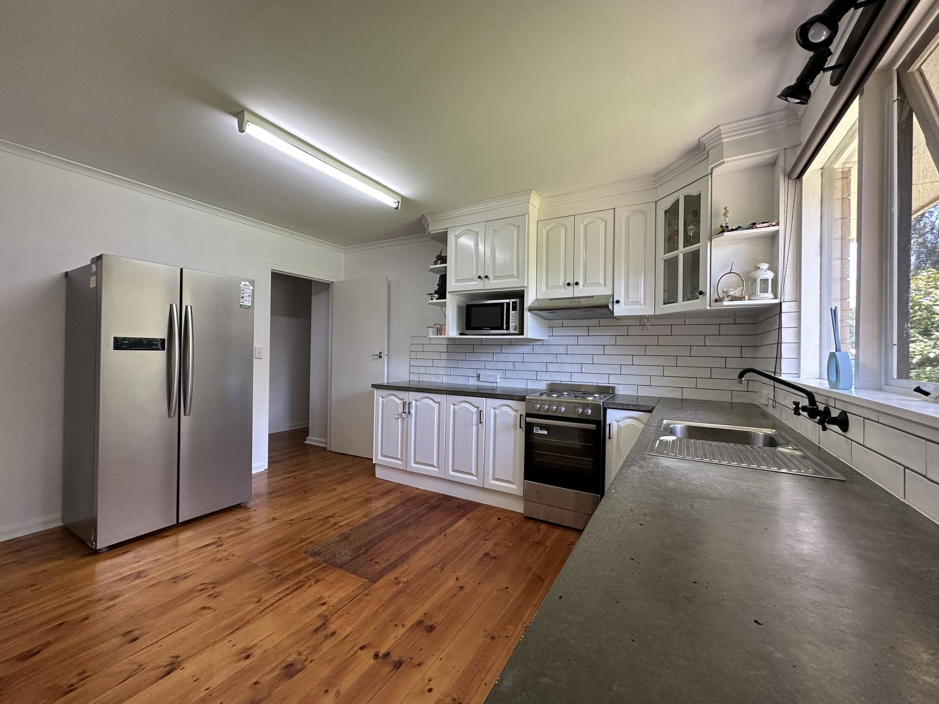 The kitchen has just received a major makeover with all new cabinetry, stainless appliances, subway tiles, and concrete bench tops. The laundry has also been upgraded to match the kitchen. The L Shaped lounge features gorgeous polished timber floors and reverse cycle airconditioner.