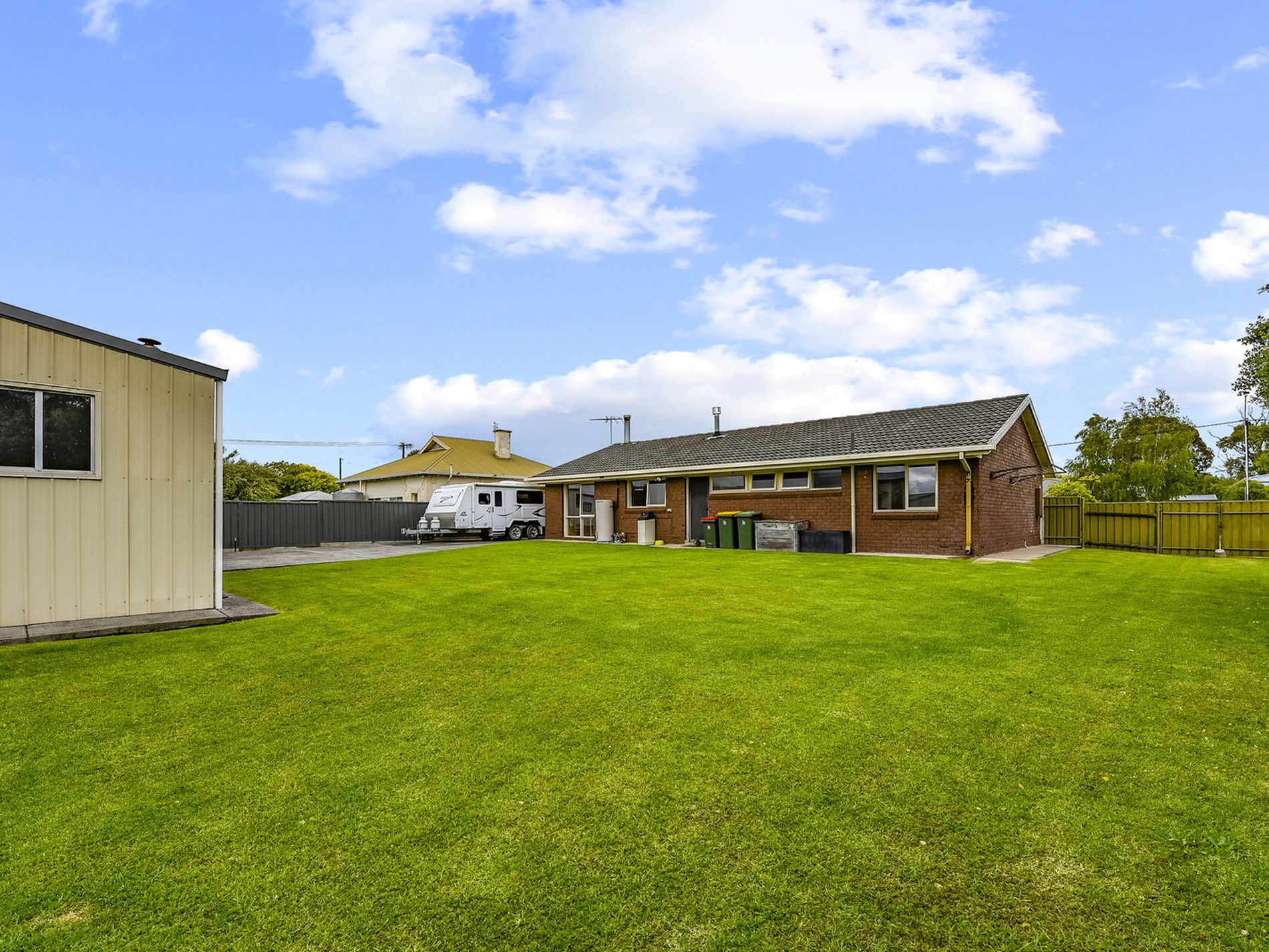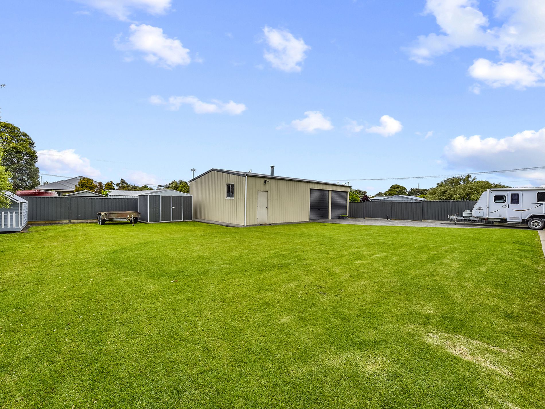 The yard itself is a carpet of lawn with privacy hedging and established garden beds. You also have a garden shed for the lawnmower and garden tools.