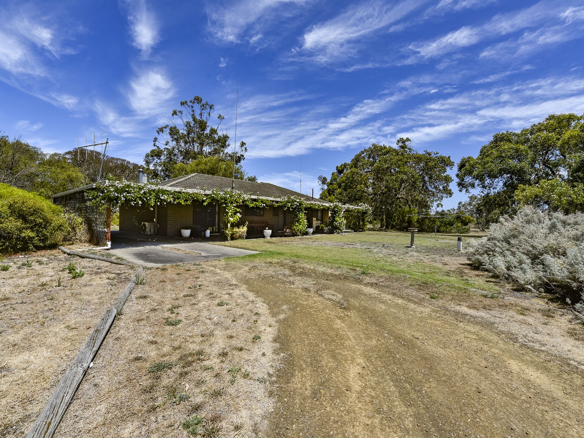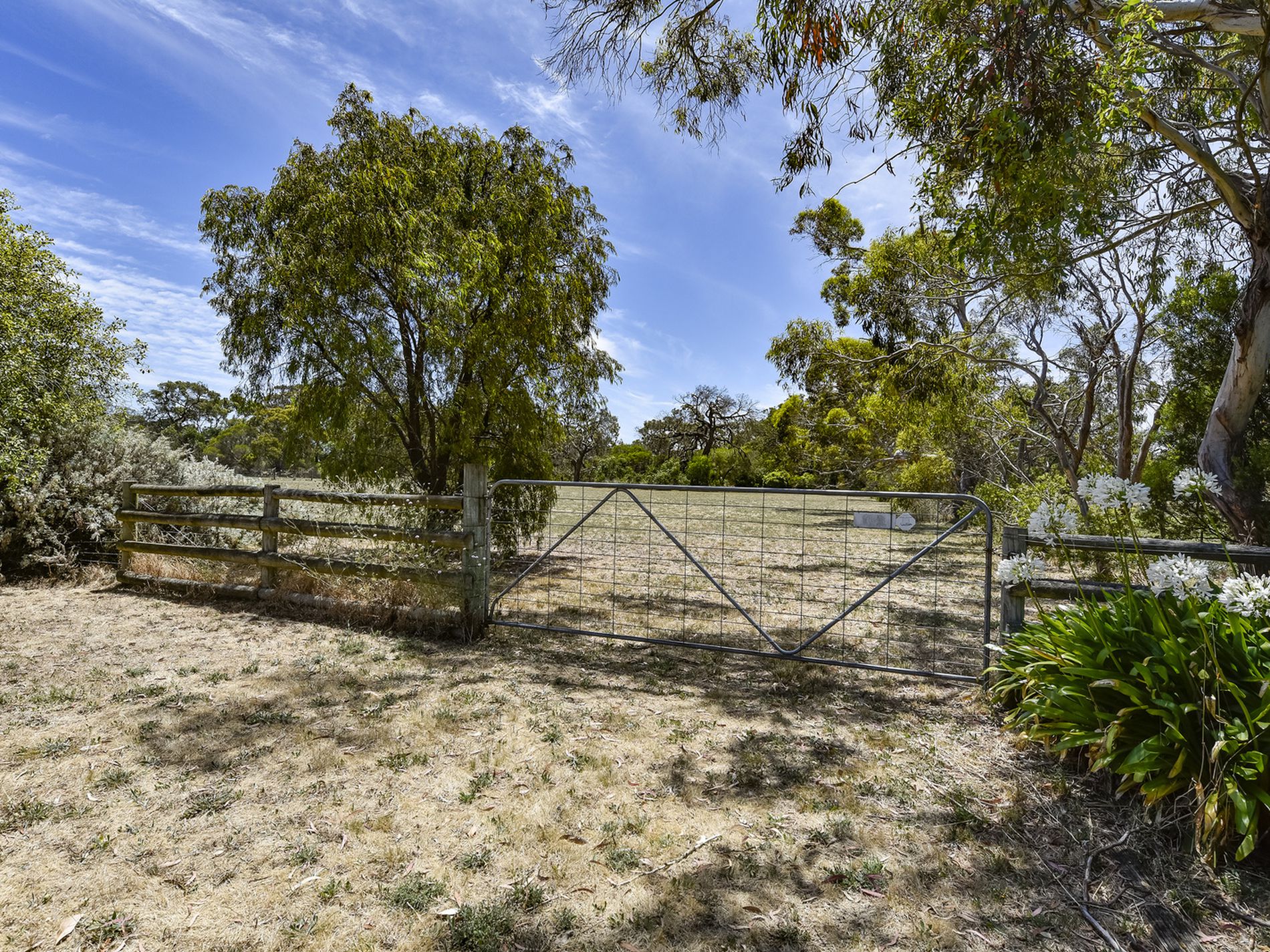 Along a passage you will find three Bedrooms, all are generous size doubles, and are carpeted with curtains, the master has built-in robes. They sit adjacent the tiled family bathroom which has a separate bath, shower and vanity, the toilet is separate. There is also a linen press in the passage. All the bedrooms also have views out to the beautiful private grounds. The tiled laundry is off the kitchen, it has a built in ironing station and external door. From here you access the rear yard and verandah. A perfect place to enjoy afternoons with family and friends with a Barbeque, a sneaky wine and some tunes while watching the kids enjoy running around the lawns and exploring the paddocks and climbing trees.