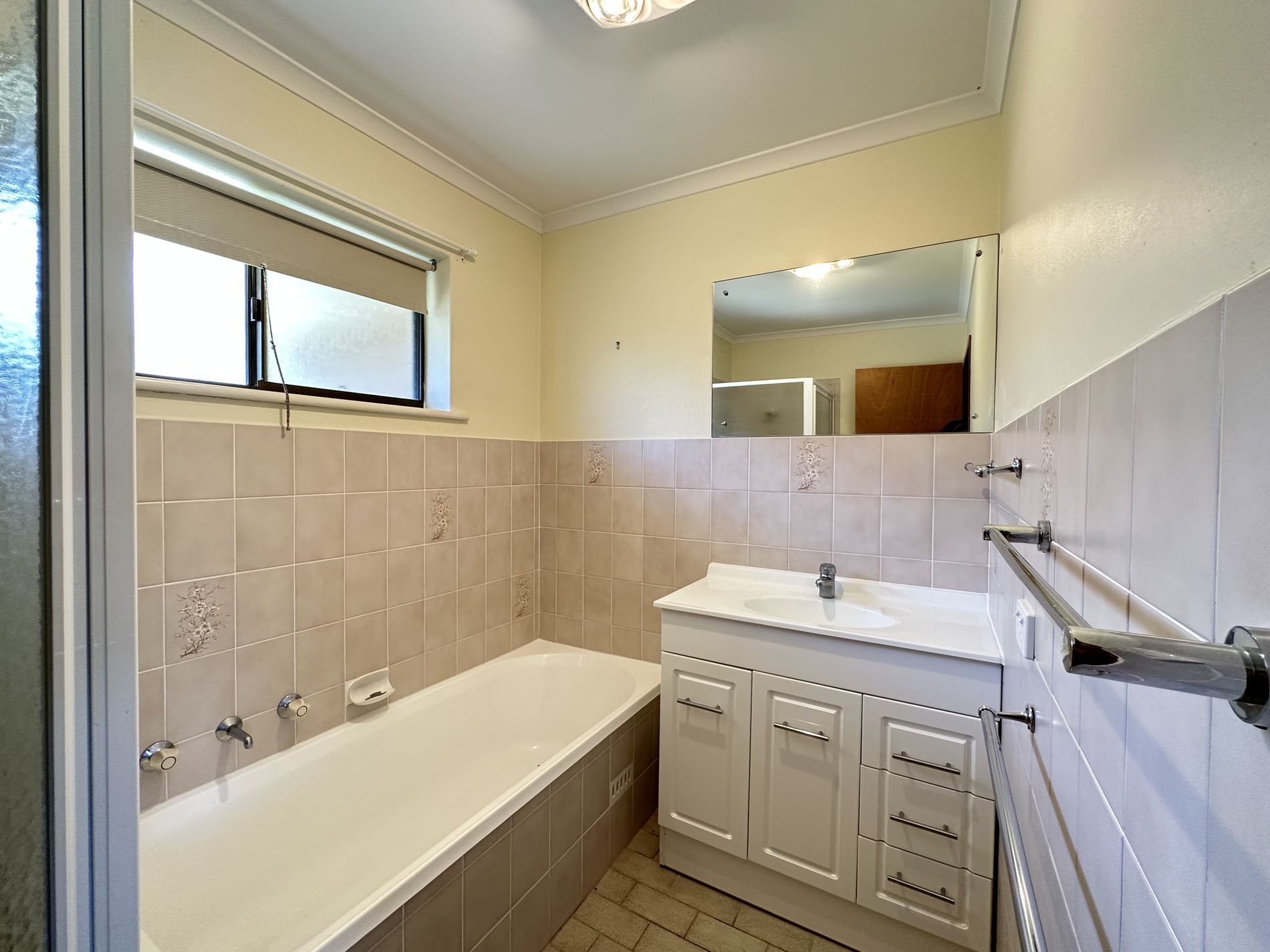 Two bedrooms, both with curtains and built in wardrobes. Linen press in hallway, laundry with rear door access and electric roller door garage under main roof.