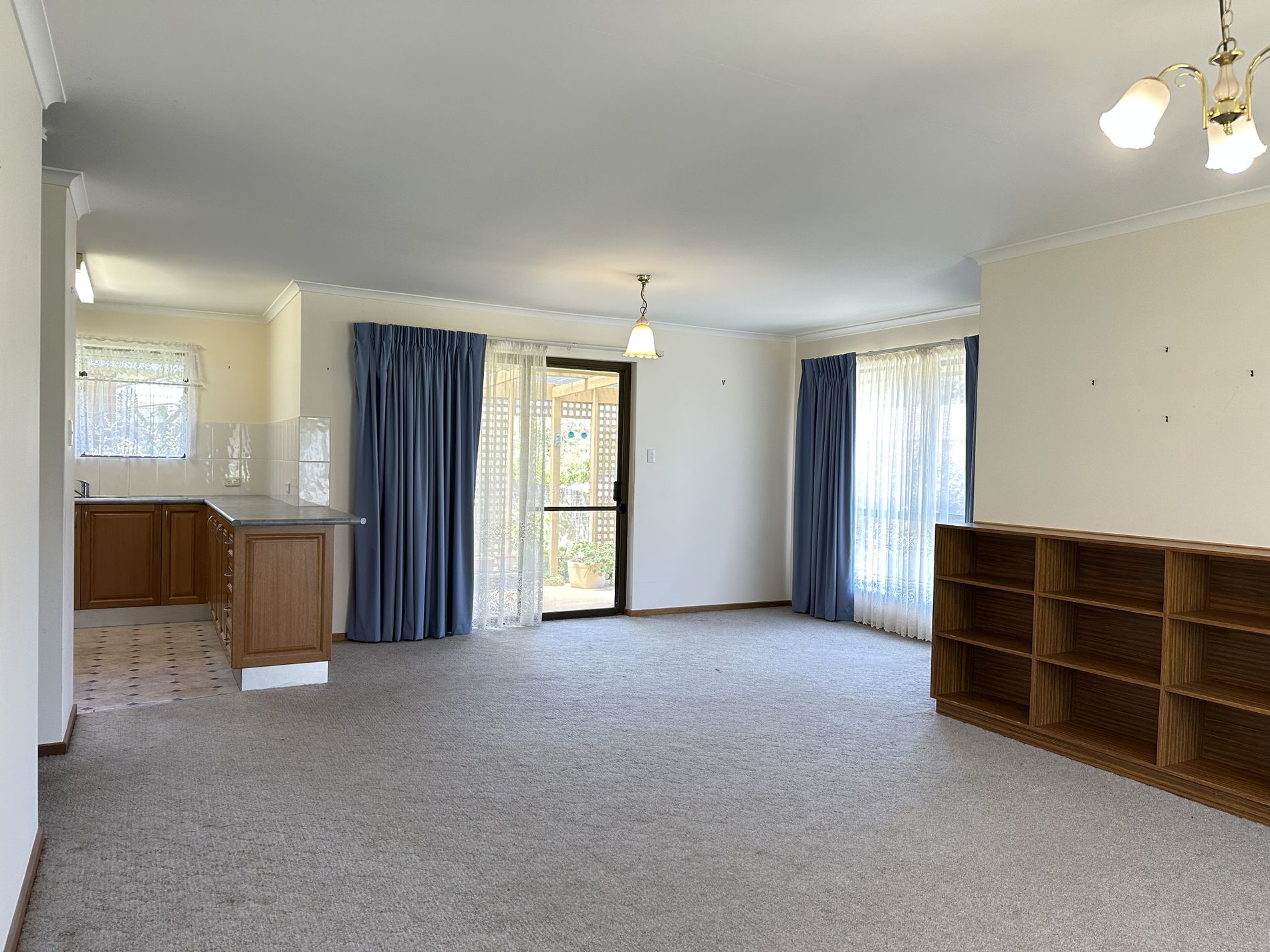 Open plan kitchen, dining and lounge with open kitchen area and a reverse cycle air conditioning. Updated kitchen with electric wall oven and ceramic cooktop.