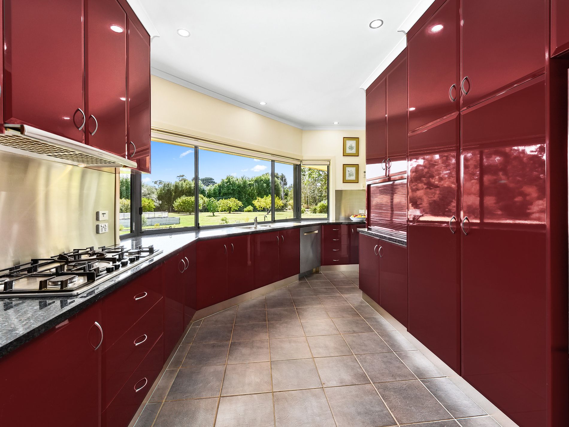 From the living space you enter another private wing with three generous queen bedrooms, all carpeted, two with built-in robes. These flow off an activity space perfect for a playroom, games room or an office with views over the grounds. The three-way main bathroom comprises separate powder area, bathroom with bath, shower and vanity and separate toilet. The spacious tiled laundry with large storage cupboards leads outside to the rotary clothesline.