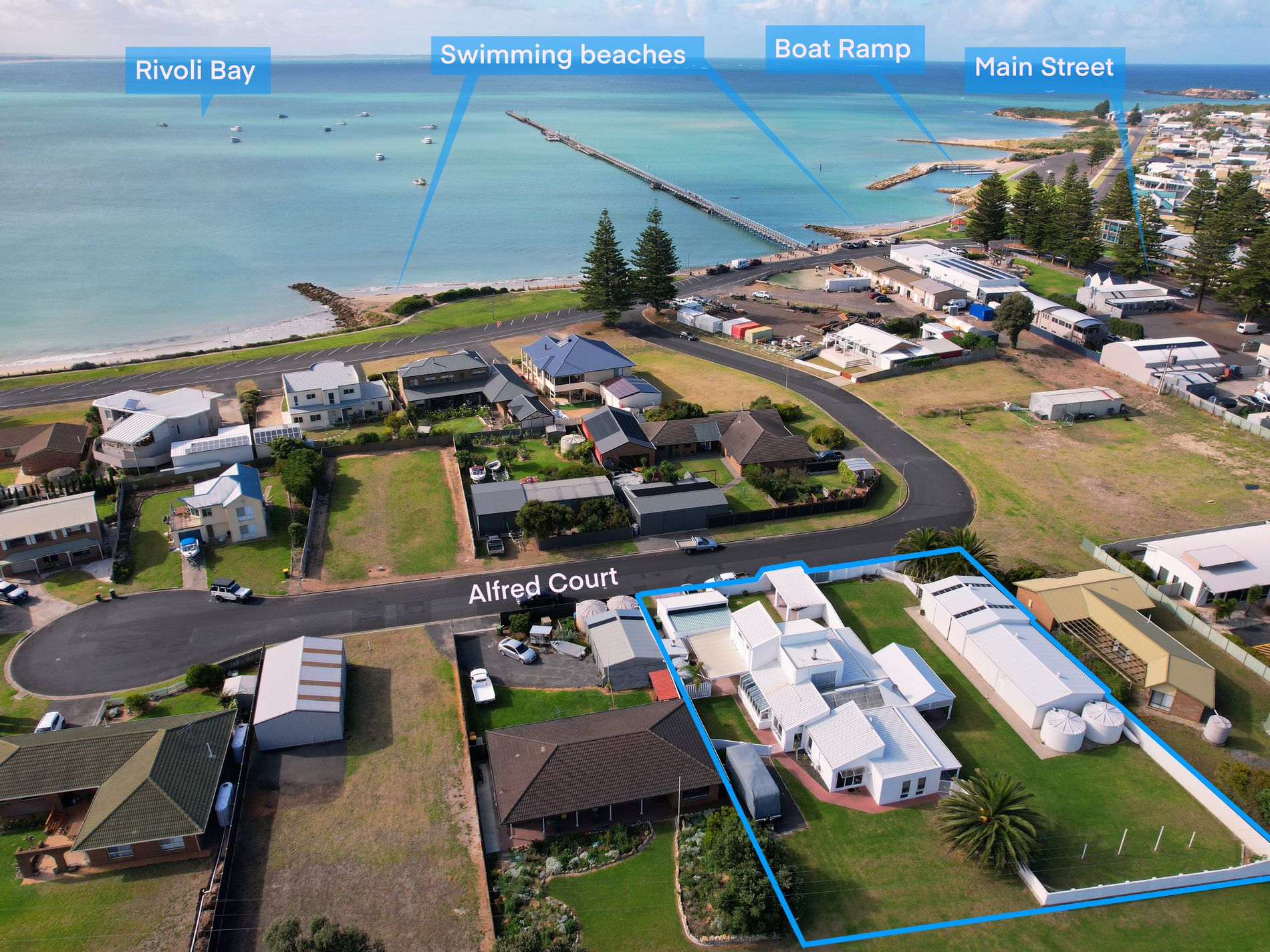 Welcome to 13-15 Alfred Court, Beachport South Australia. This luxurious residence, commonly referred to as ‘The White House’ is an icon of the Beachport landscape, and with its architectural design and wall lined boundaries it will remain an icon for generations to come. As soon as you step inside the front gate, you'll love the sense of privacy and security. Located only one street back from the foreshore on Alfred Court, the quiet cul-de-sac is a highly prized address in Beachport. it is just a short stroll to everything Beachport has to offer. From the cafes, the hotels, boutique shopping, or a lazy afternoon at the brewery tasting beer and Gin. To swimming, surfing, jetty jumping, or catching that illusive whiting off the jetty, it truly is an amazing location.