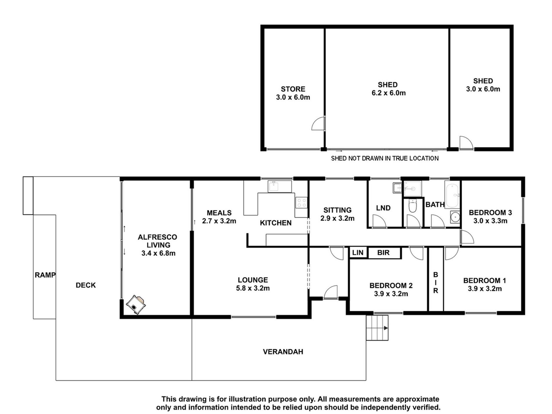 Three bedrooms, all carpeted with curtains and night blind. Two rooms with built in wardrobes and ceiling fans. Bathroom with shower, bath and vanity and the toilet is seperate. Laundry with wash trough and taps with door to the back verandah.