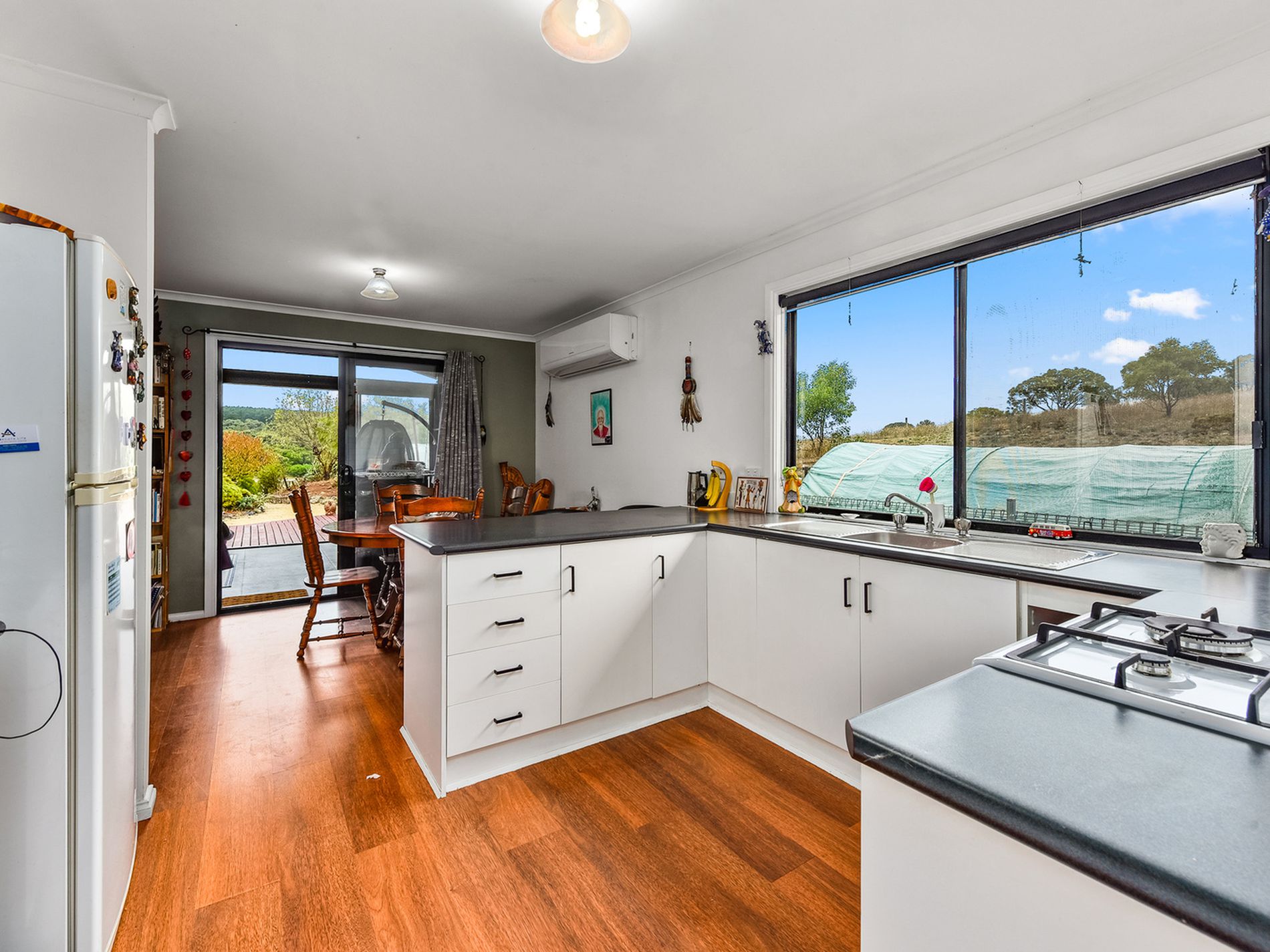 Open plan living, dining and kitchen with freestanding oven with gas cooktop and oven with electric grill and single sink. Potential to have a pantry or office that leads from the front entry and kitchen. Reverse cycle airconditioner to keep the home warm in the cold months and cool in summer.