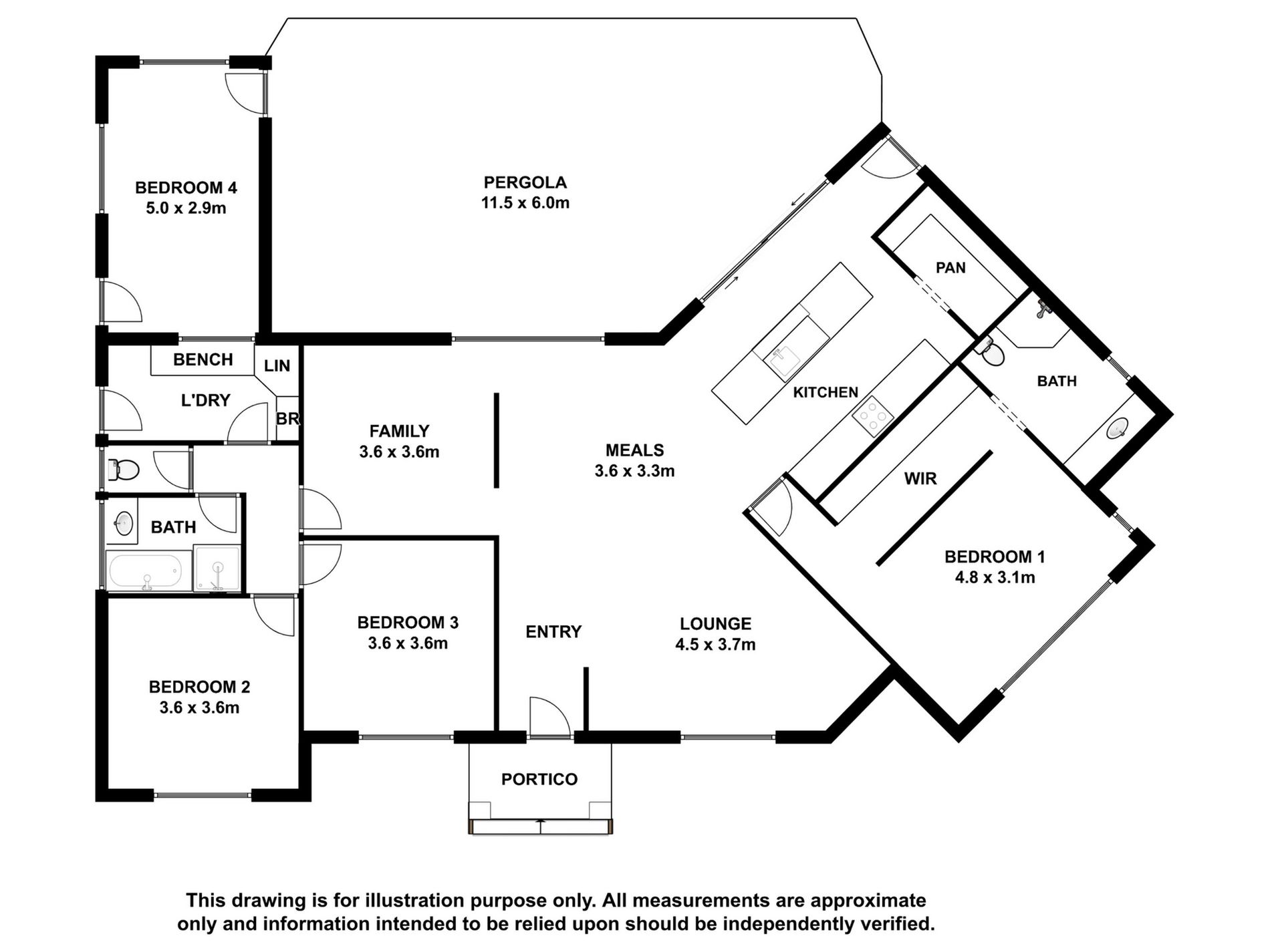 There are three other bedrooms, two are carpeted with built-ins and ceiling fans. Two other bedrooms are carpeted, built-ins and ceiling fans. The fourth bedroom is ideal for a teenager or a guest room. It could also easily be converted to a place to work from home, massage and hairdressing come to mind. It has its own reverse cycle air conditioner and there is plumbing to the room. These bedrooms share an appealing main bathroom which has a separate Shower, bath and vanity with separate toilet and adjacent laundry with linen and storage cupboards and external door.