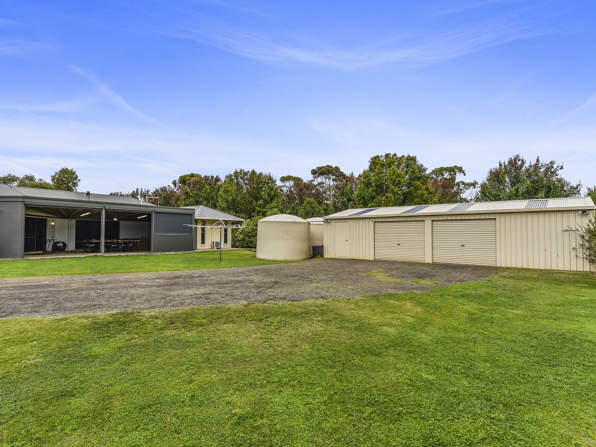 It's the perfect sized block for bringing up a family and for those looking to have a garden. Its a blank slate for the green thumb, you can grow veggies or plant an Orchard create a formal garden or add more native trees, there's plenty of land to enjoy. A four bay colorbond shed has cement floor and power. A private access door reveals' a bar area with a slow combustion wood fire. there are two car bays with roller doors and a workshop/storage area.