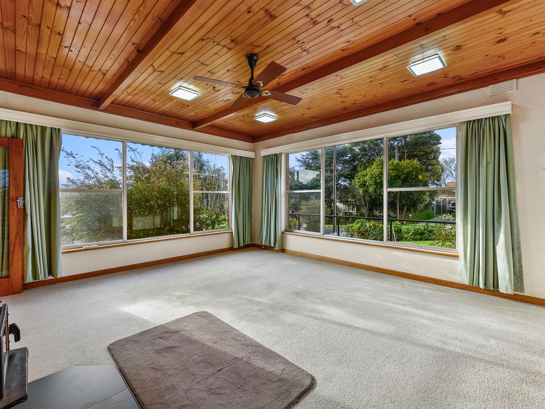 The front lounge is super spacious with wonderful, elevated views of the countryside through the large format aluminium windows, which also fill the room with natural light. Plush carpets, a near new slow combustion wood fire and exposed beams will keep the room warm and cosy in winter. A reverse cycle air conditioner can also be found here to keep you cool in summer.