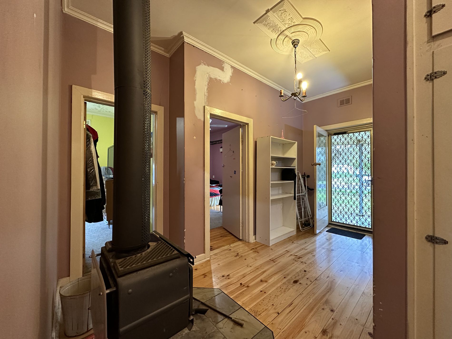 The home sits on a sprawling allotment of 1455m2 with established gardens and plenty of open lawn area for the kids. This home offers three bedrooms, two living and a large dine in kitchen. A large lounge at the front includes plush carpet, large window, and art deco features. The hallway features floorboards and a free-standing slow combustion wood fire, centrally located to heat the whole home.