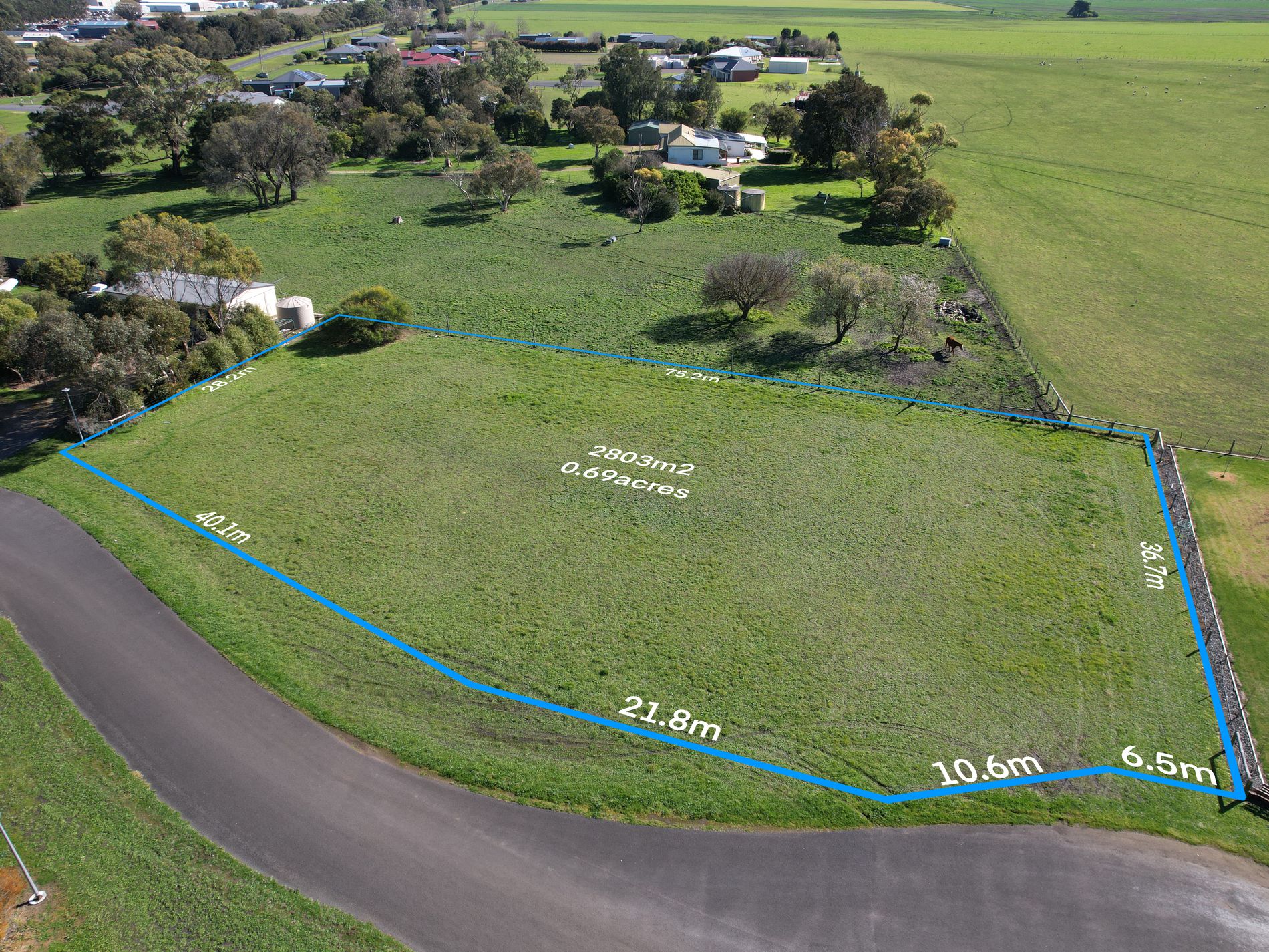 Here's a level allotment spanning 2803m2, offering abundant space for a house, plenty of yard, and shedding. Situated in a highly favorable location, it's conveniently close to our lovely walking trail, Mega domain nature playground, Swimming Lake, Kindergarten, Primary School and High School.