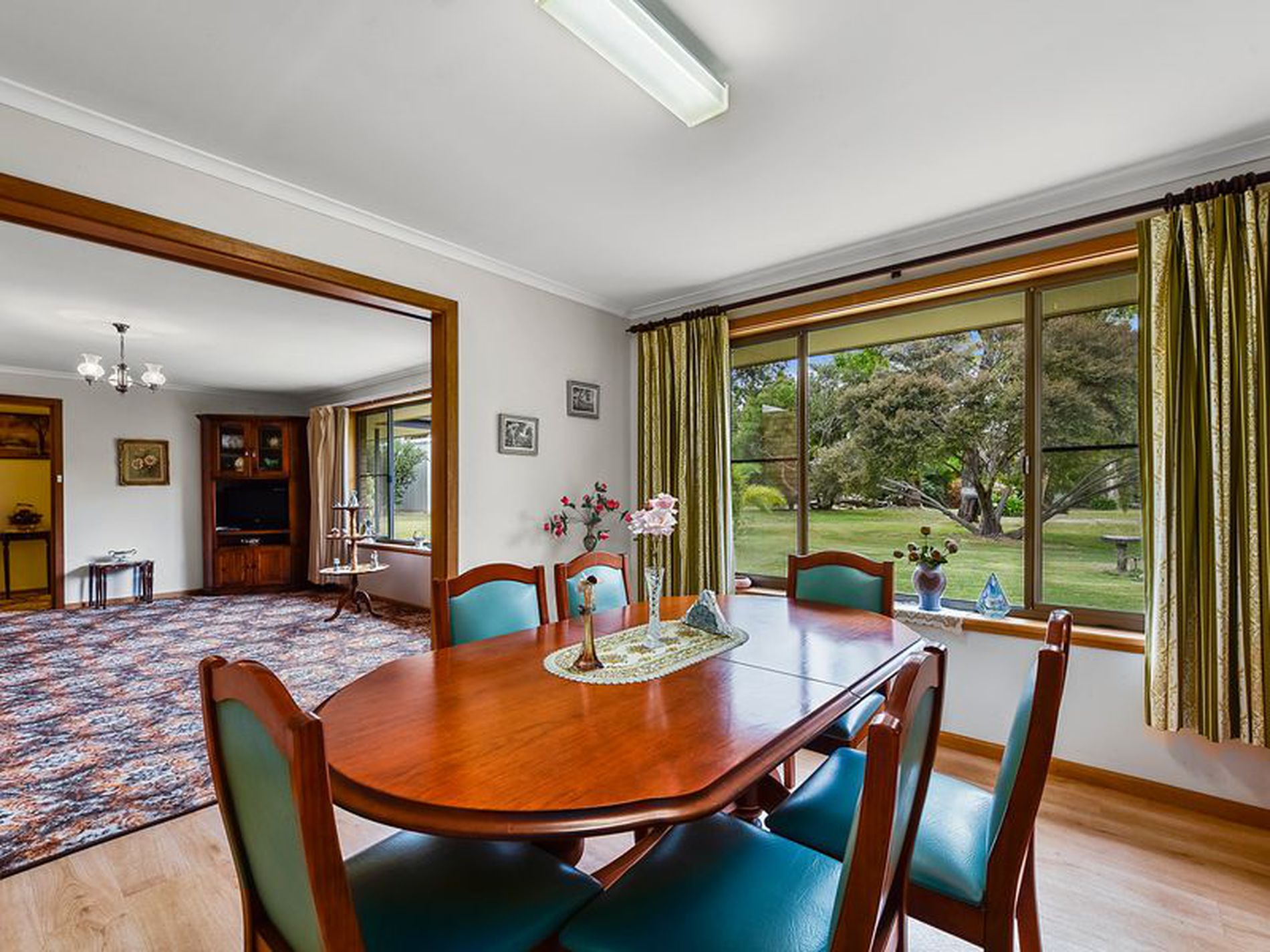 Walk through the front door into a carpeted entry hall. the formal lounge is carpeted and has a lovely outlook to the garden. There is a dining area adjacent to the formal lounge next to the kitchen.