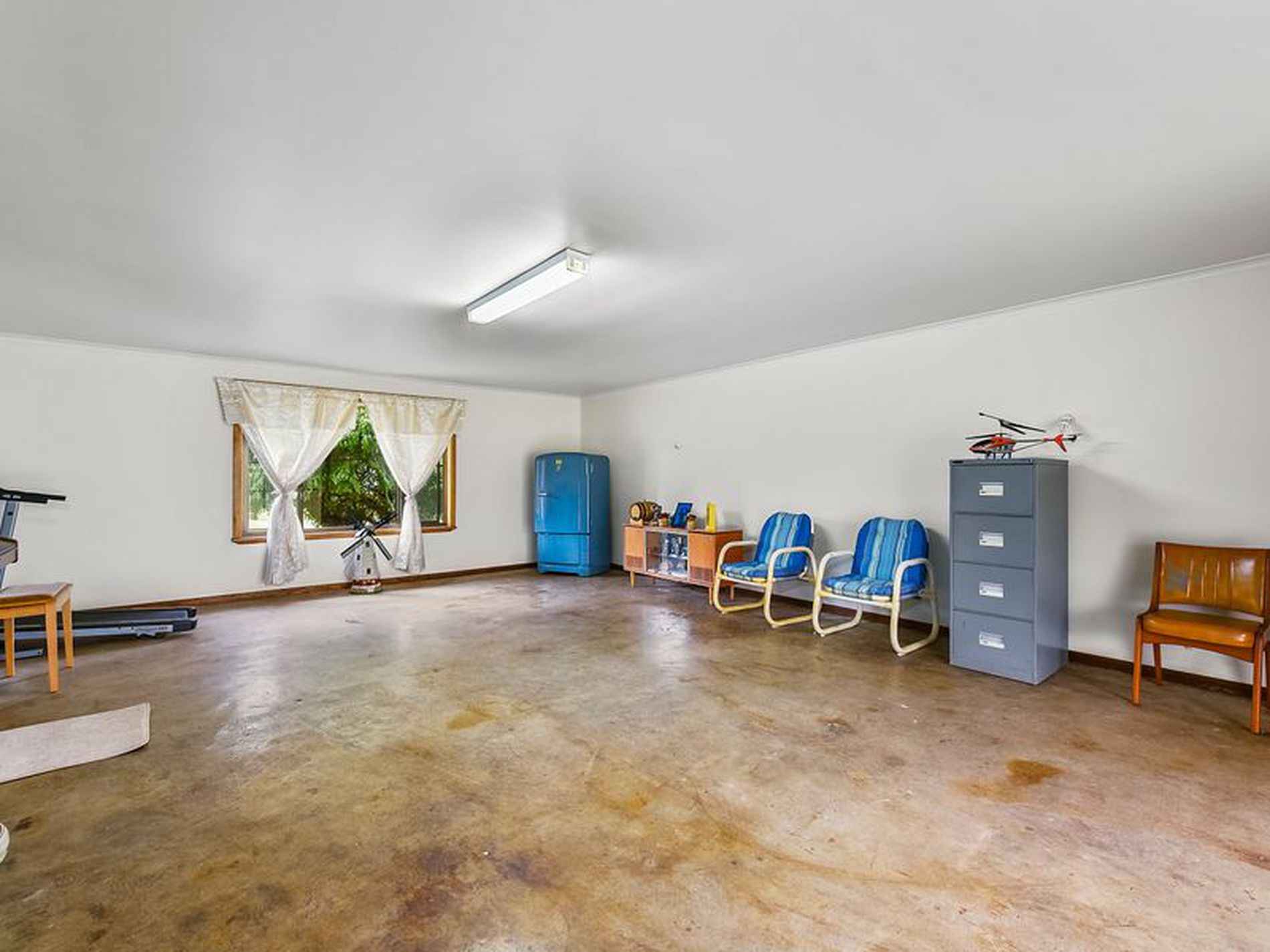 There is a MASSIVE games room accessed through a door in the dining area it has a cement floor and sliding doors out to the pergola. Ideal for entertaining !!