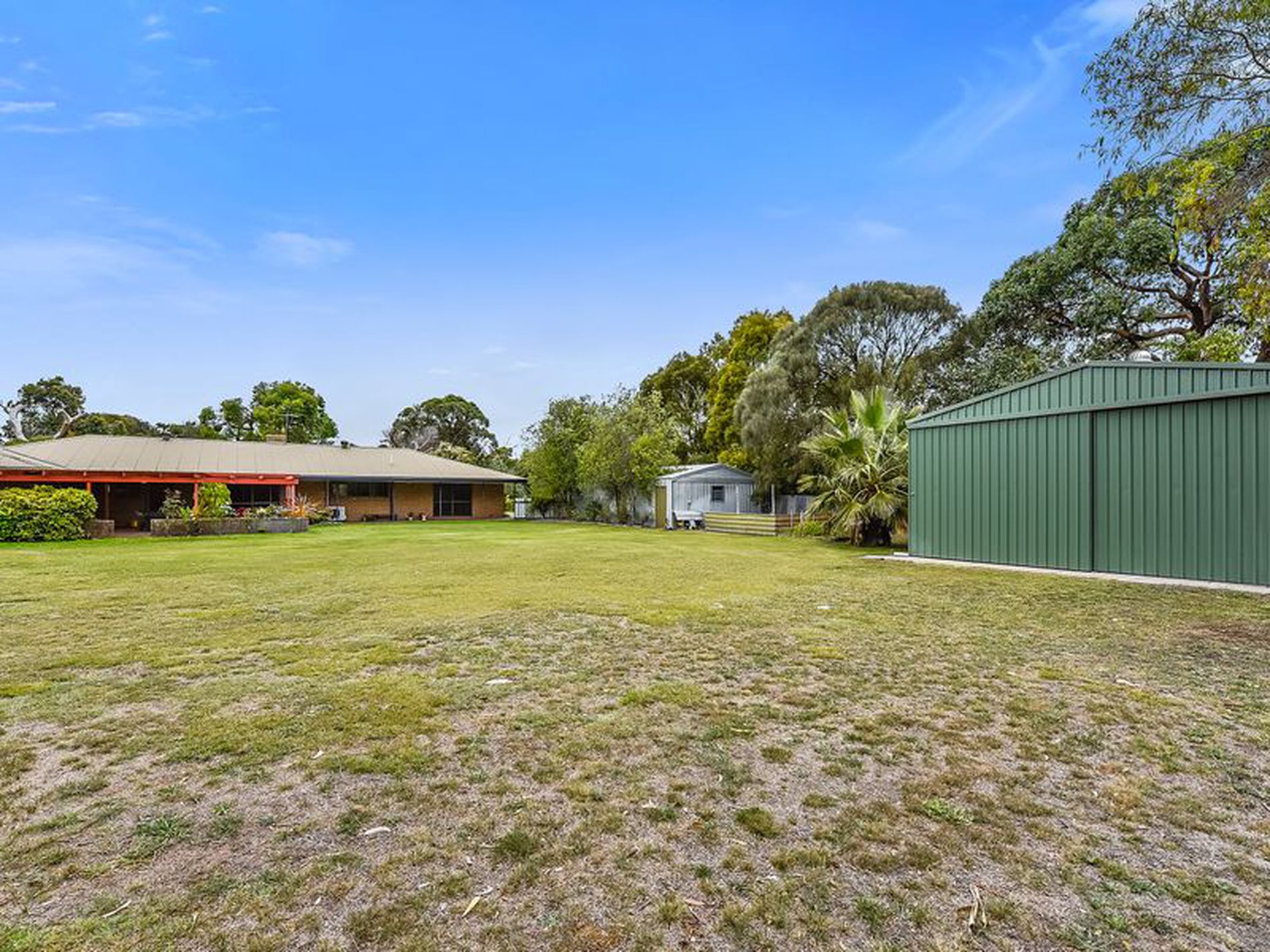 The yard is watered by pop up sprinklers on a pump and bore. there is a wood shed and a mower/trailer shed. An orchard provides fruit and native flowering trees give you cut flowers.
