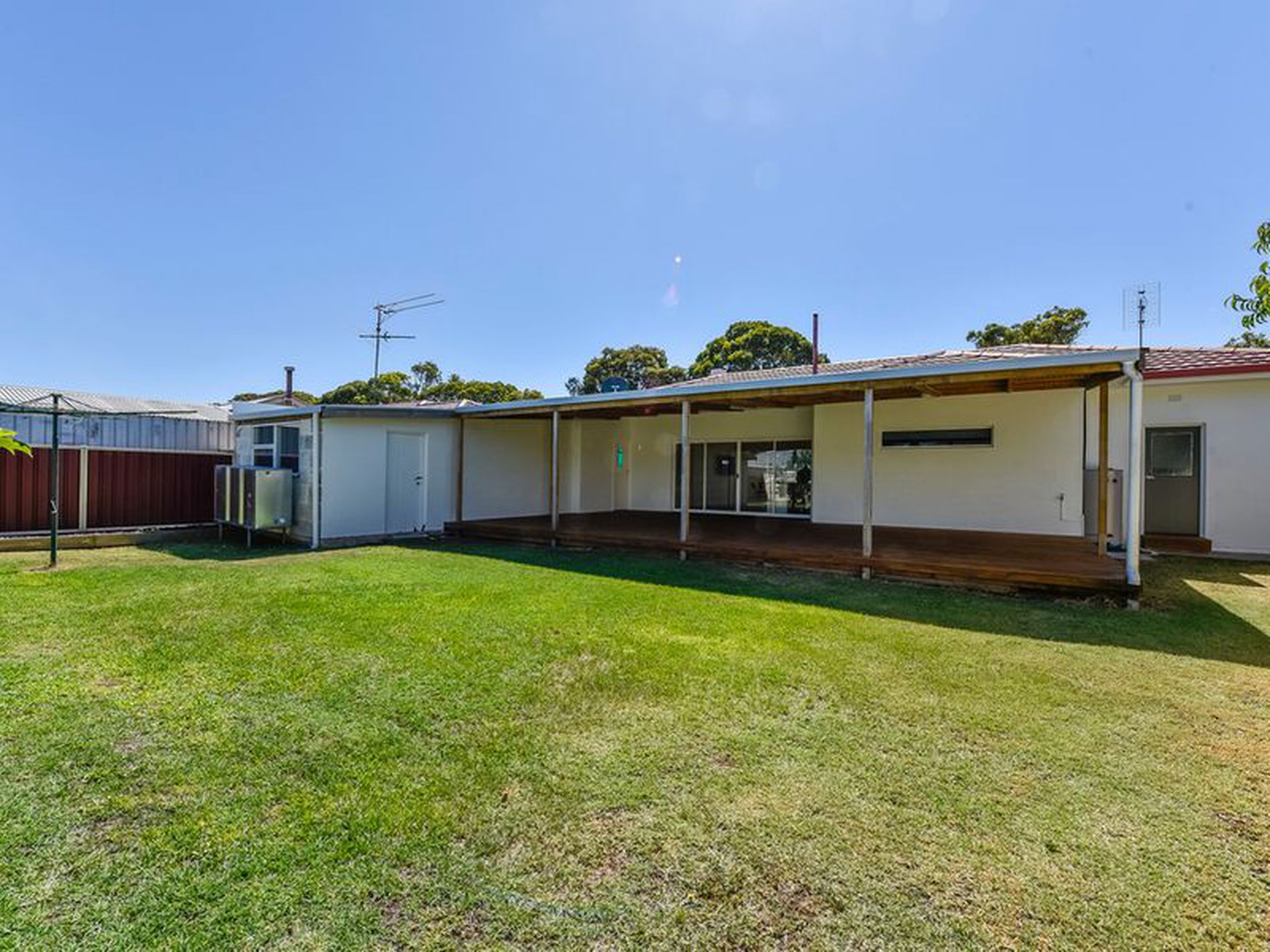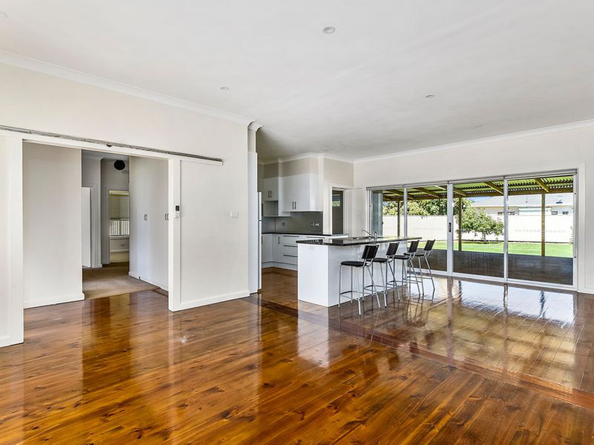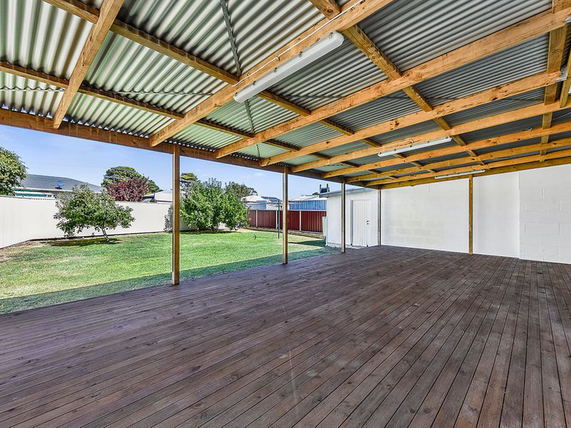 The undercover decked pergola is huge and joins your indoor living space with double sliding doors.
