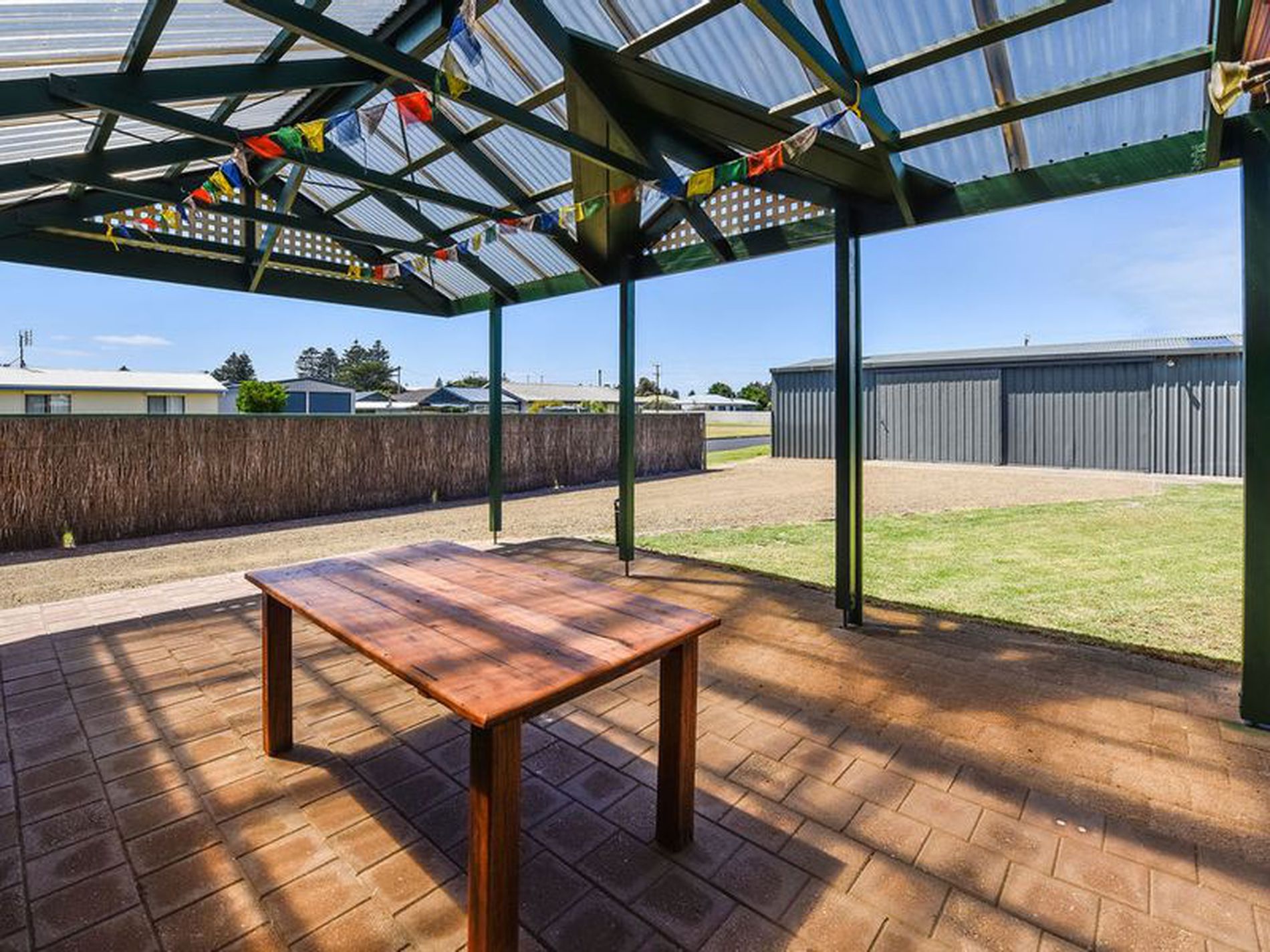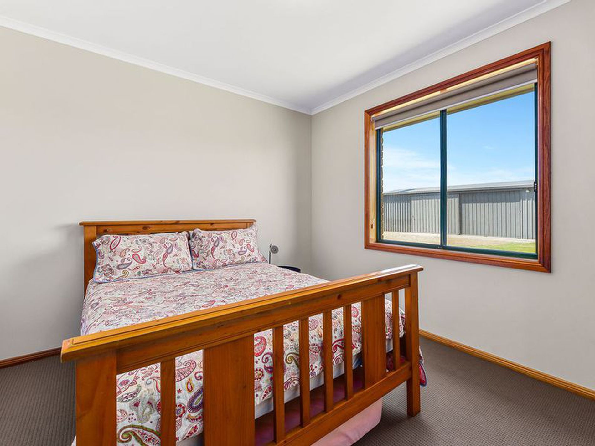 The tasteful décor throughout the home enhances its inviting ambiance, while the low-maintenance lawn ensures easy upkeep. Situated on a corner allotment with dual access points, the property includes a spacious colourbond shed with a remote roller door, capable of accommodating two vehicles. Additional features include a bore with a pressure pump and a 5,000 gallon rainwater tank.