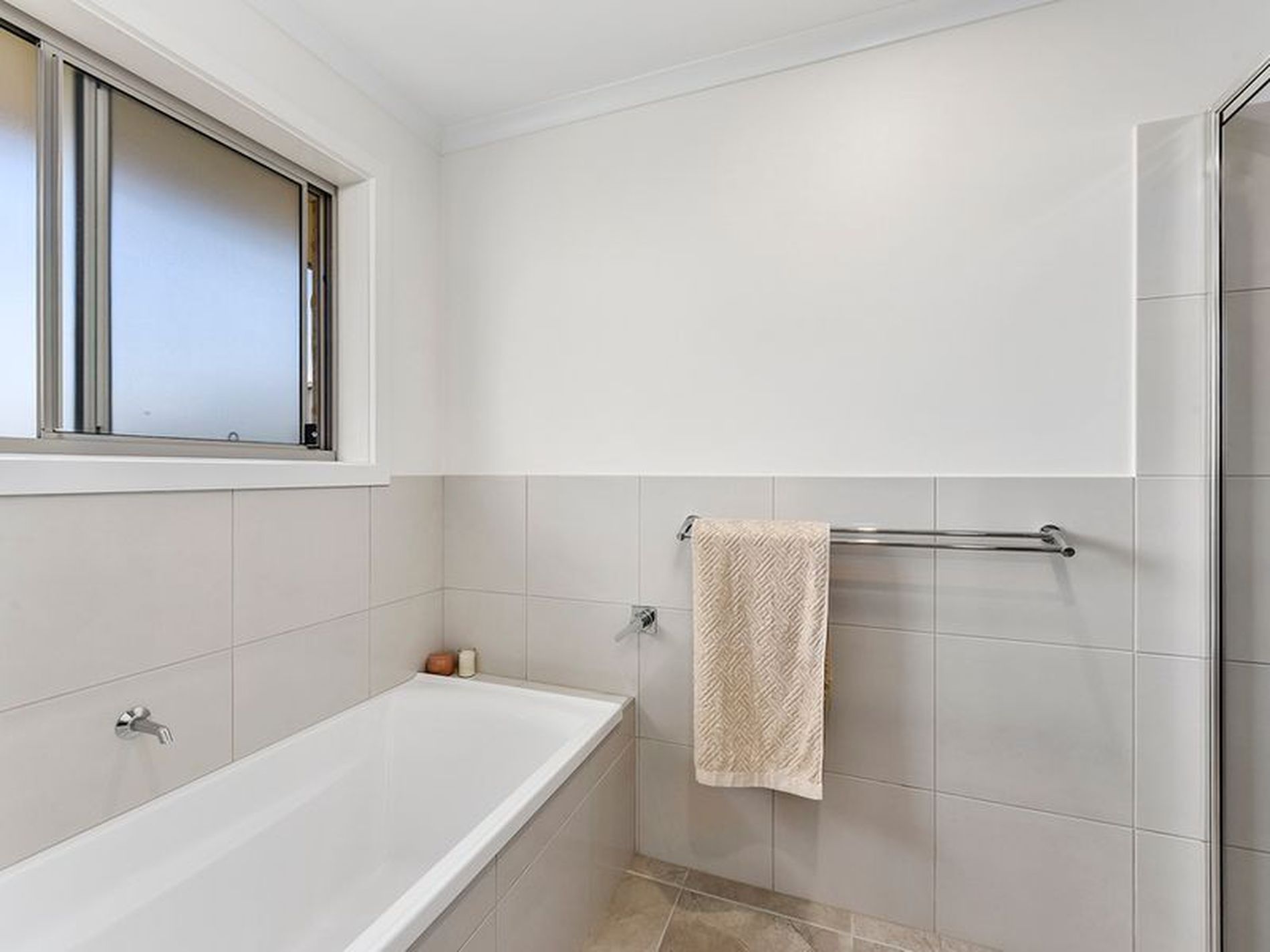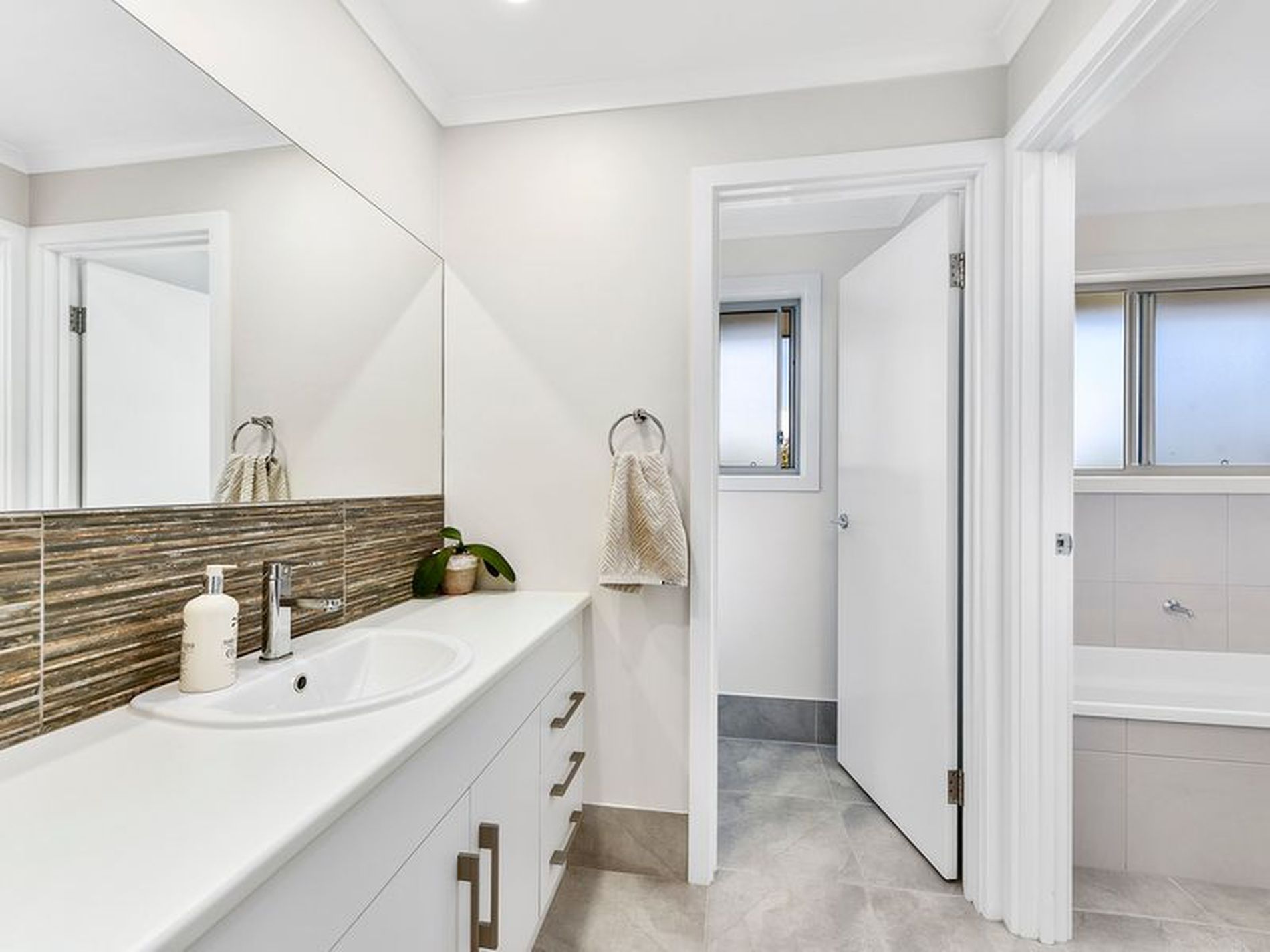There is a well appointed tiled laundry with built in cupboards AWM taps and a rear door