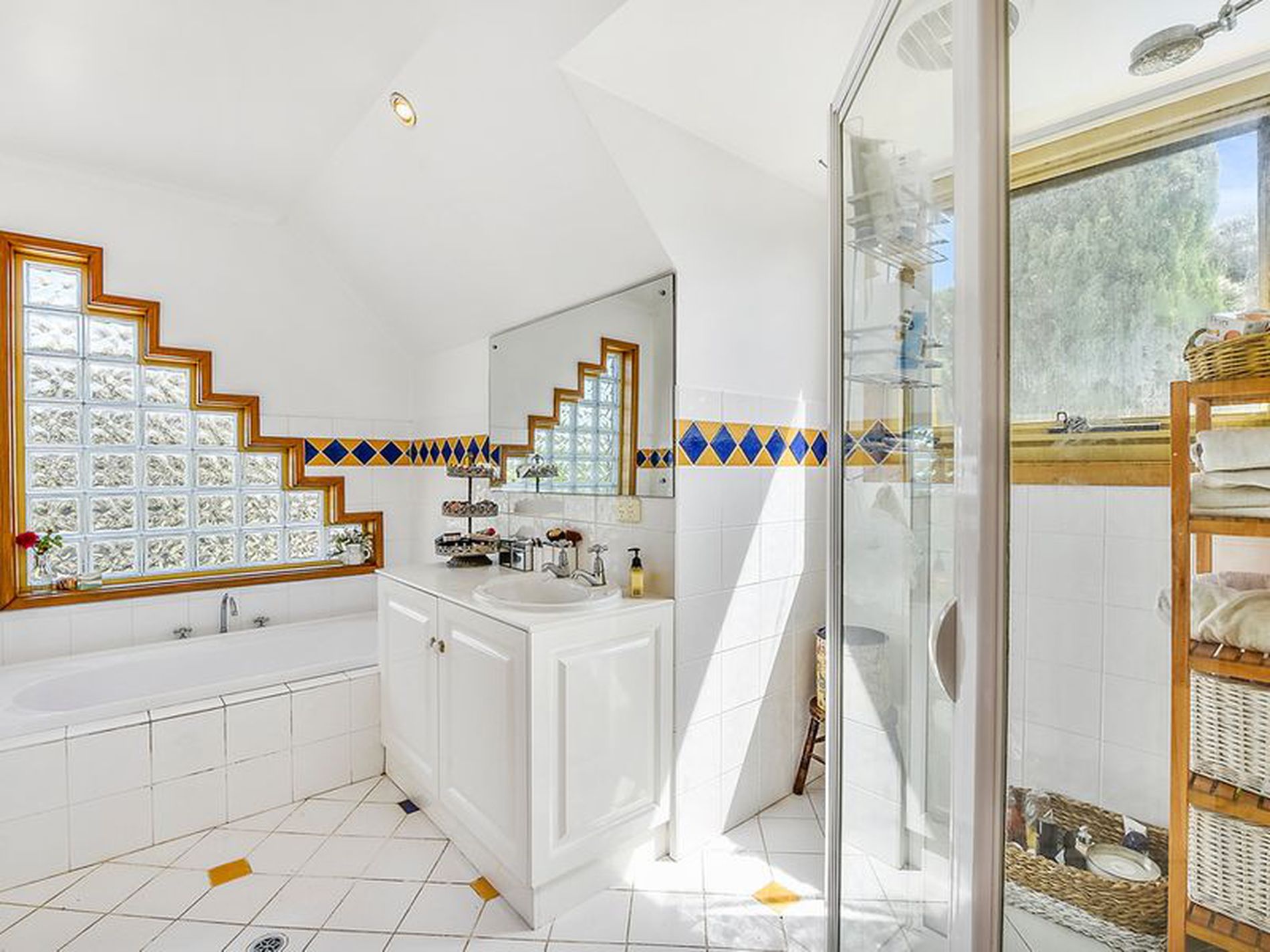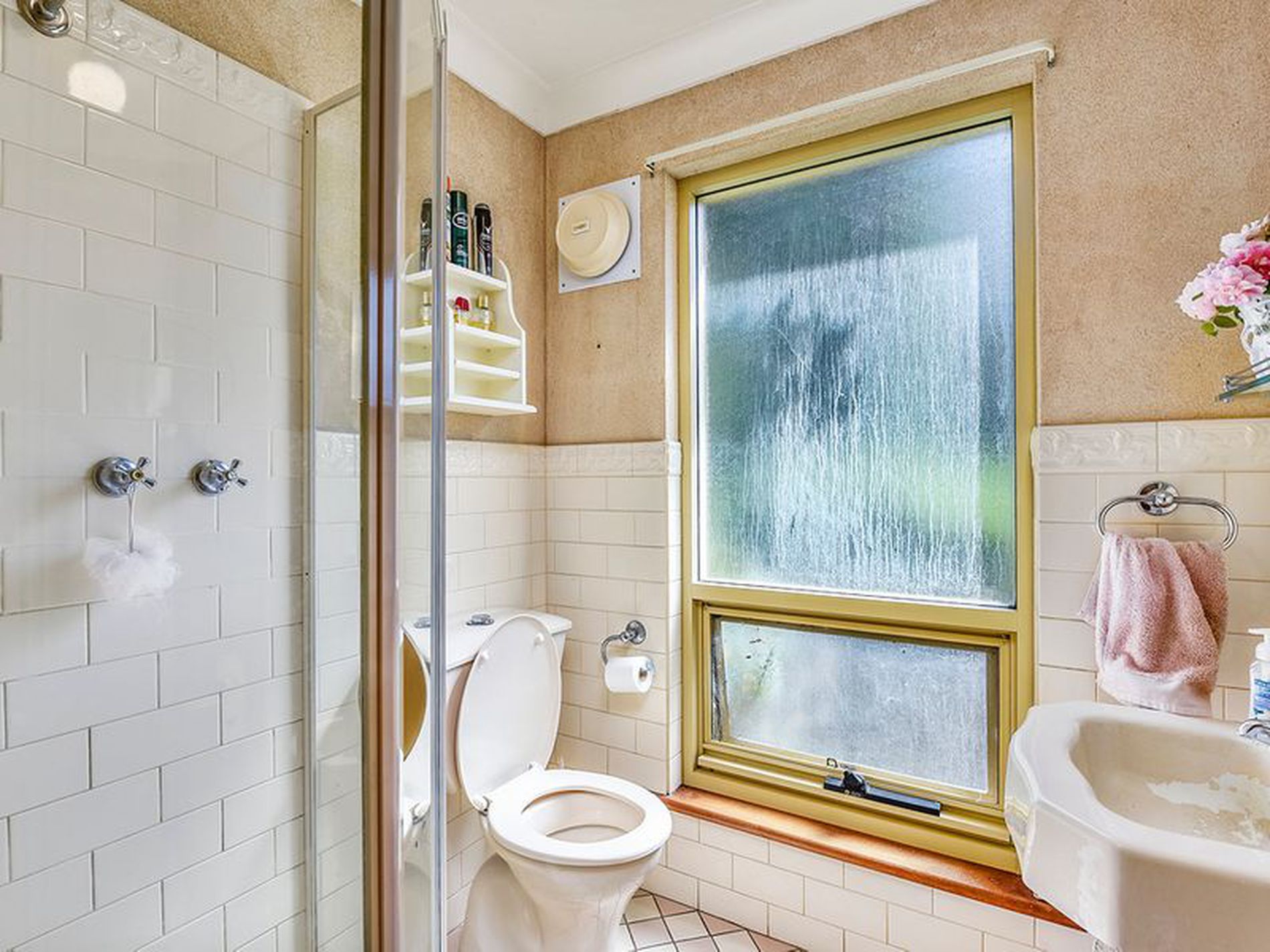 The downstairs is all living area plus the 4th bedroom and bathroom with shower, toilet and vanity. laundry with linen press and access to outside
