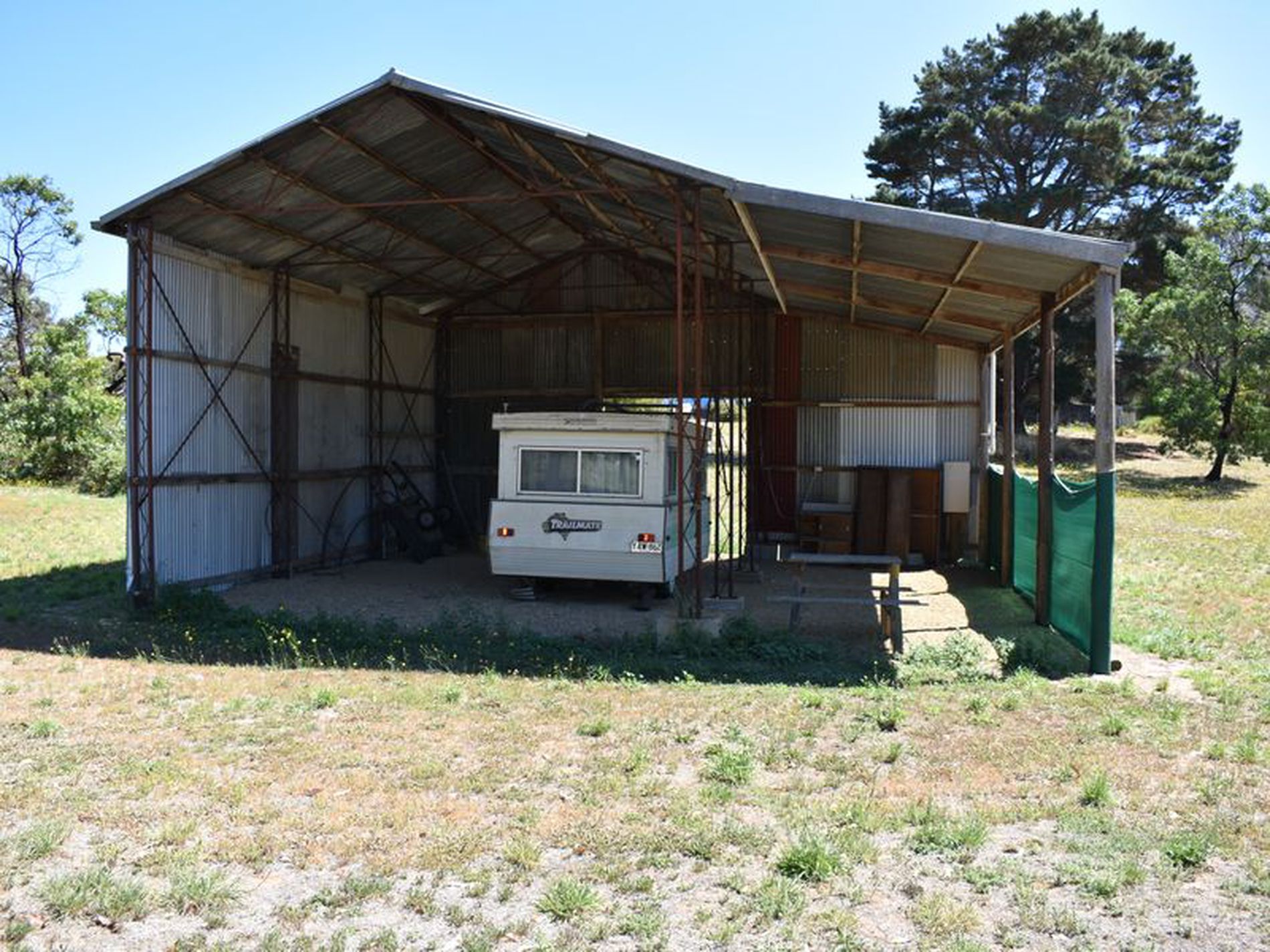 There is power and a bore, a large shed houses a caravan and the ride on mower is included.