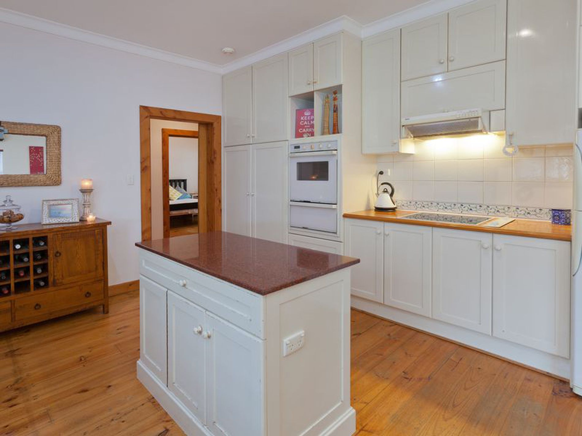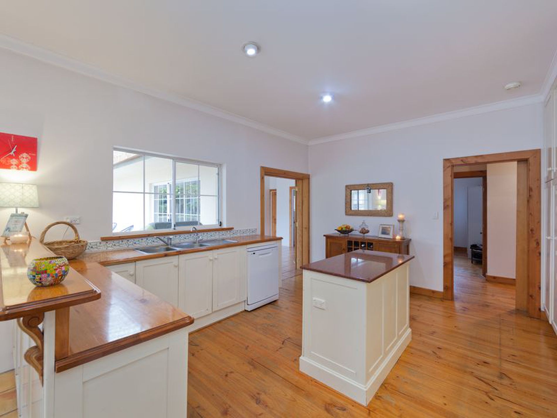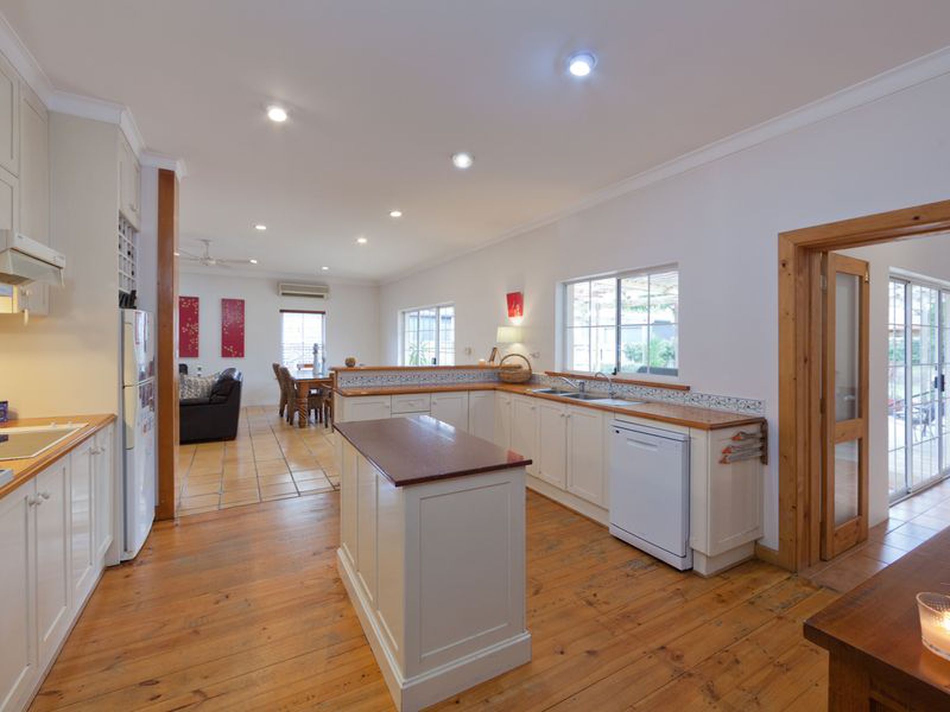 Timber floors and terracotta tiles feature throughout the home and beautiful baltic pine mixed with fresh white walls and accents make it feel spacious and open.