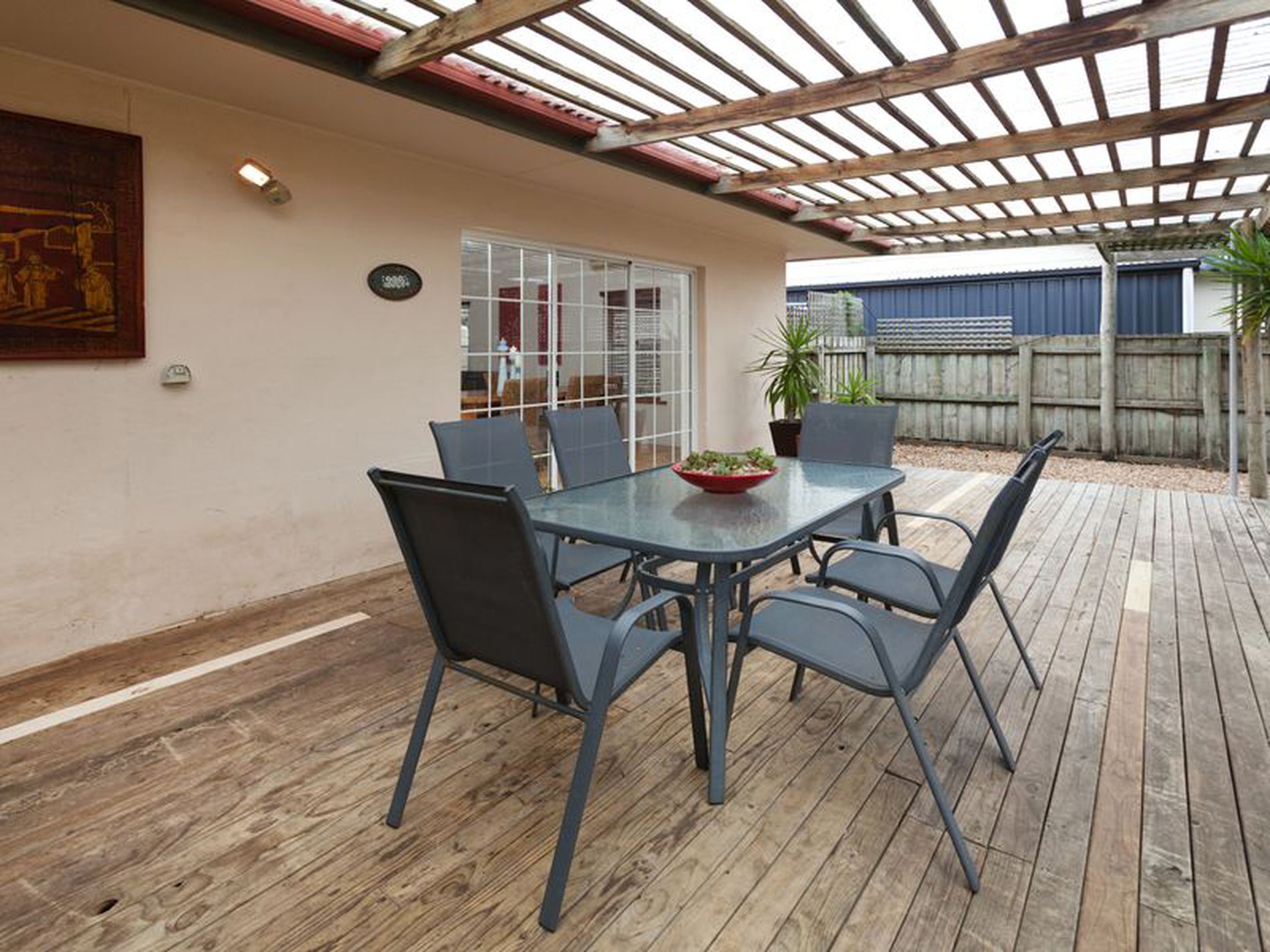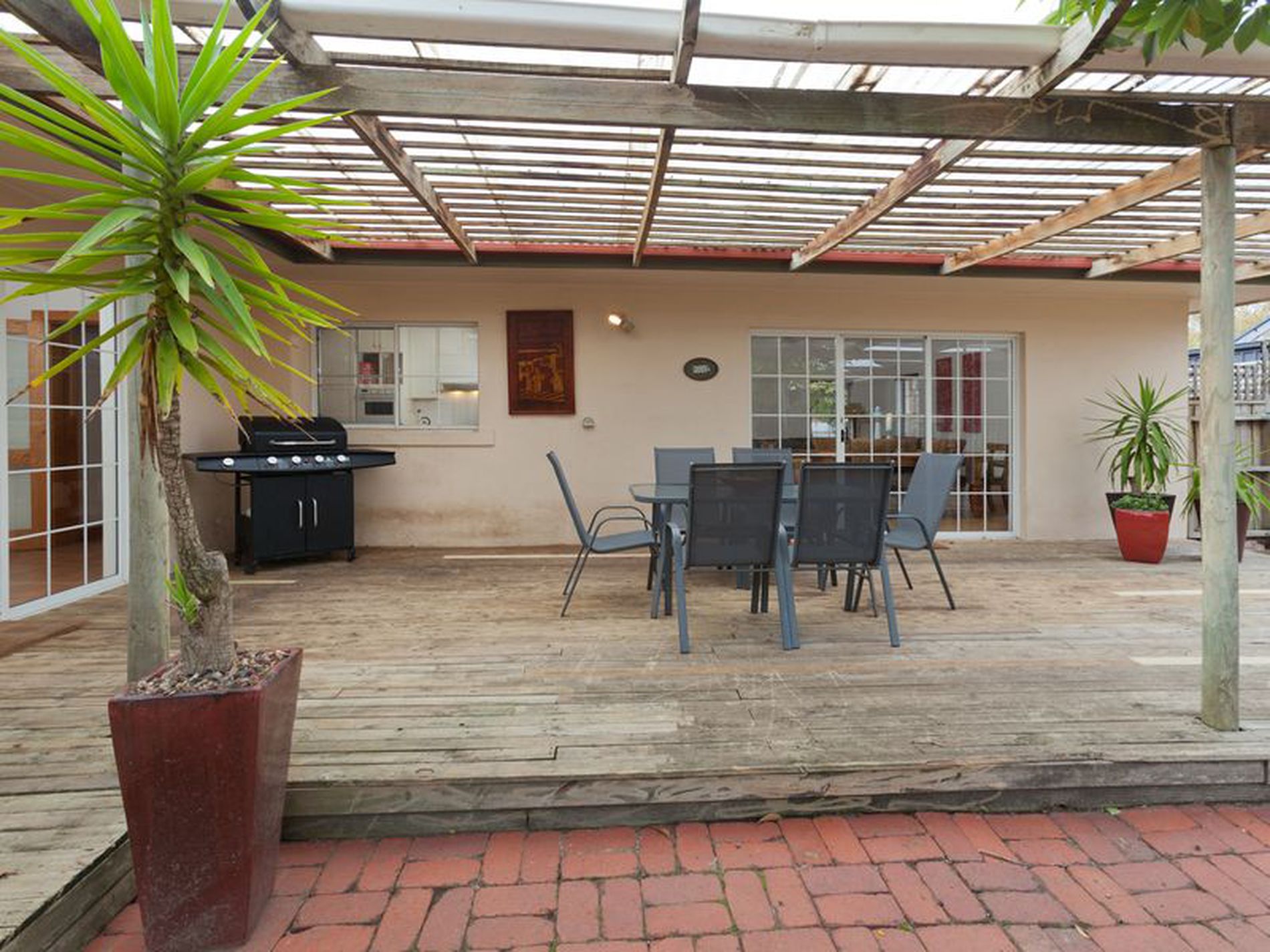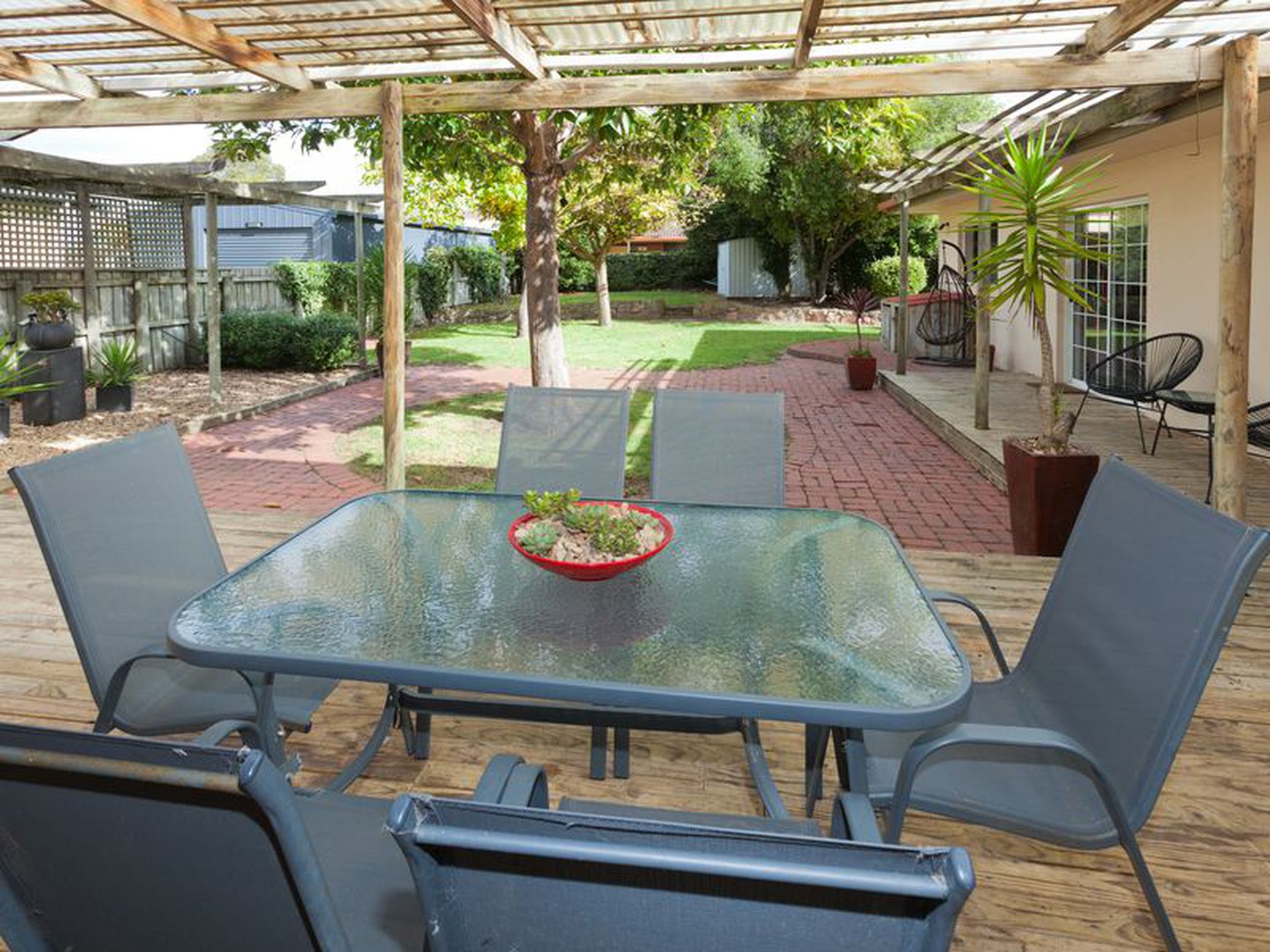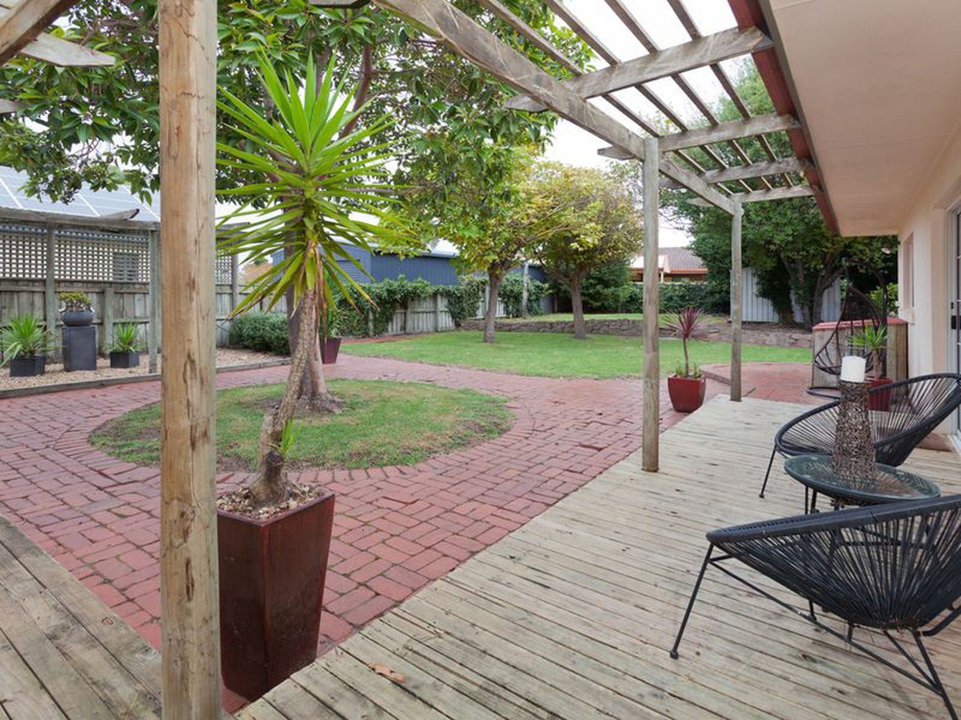 A tiled second living area also opens up to the rear decked pergola, great as a work space, for kids to play their games or quieter second TV room.