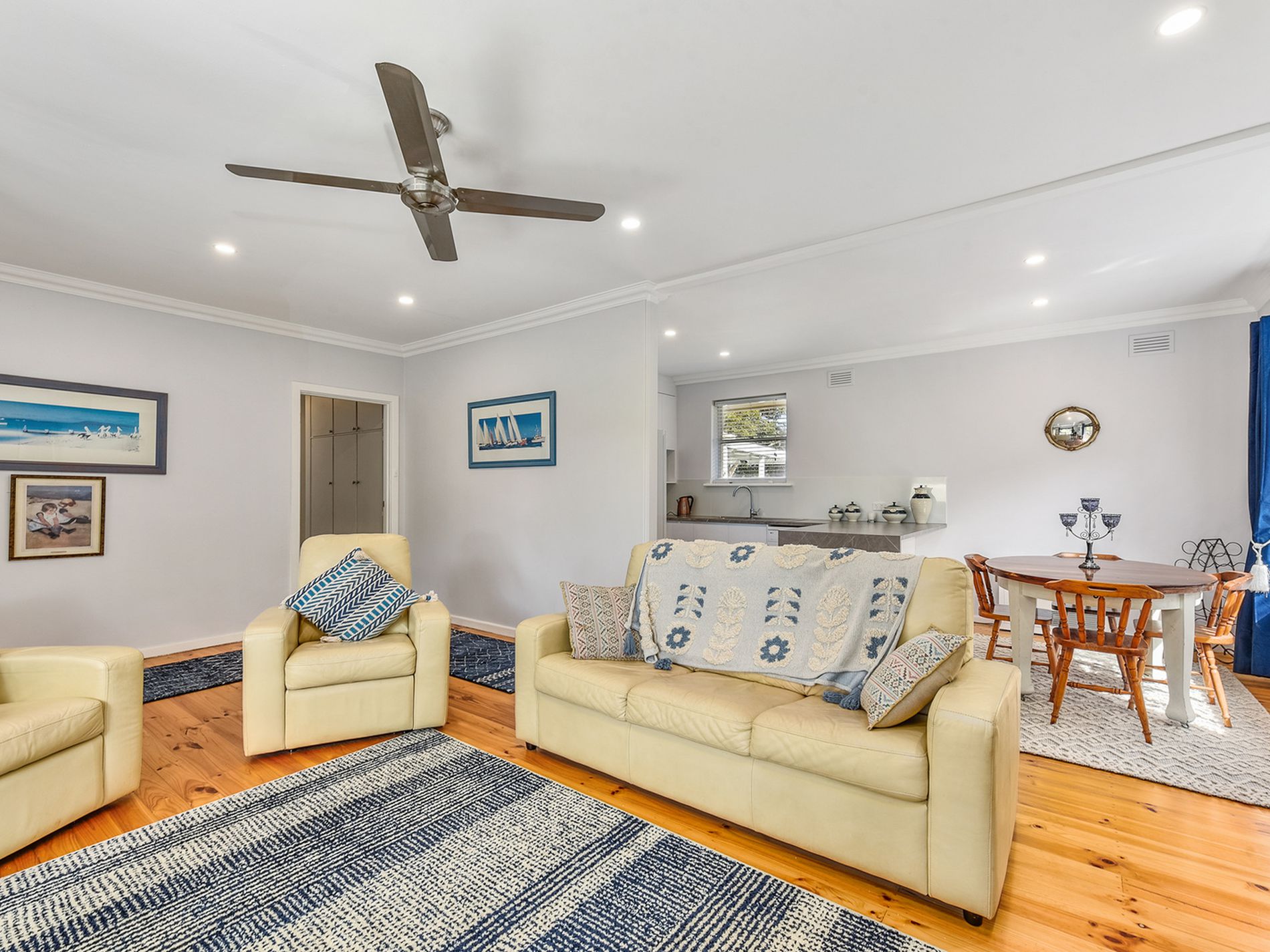 This charming 2-bedroom brick and tile residence, situated on a spacious 1252m2 allotment, is an ideal property for various lifestyles, including retirement, first-time home buyers, or those seeking a weekend getaway. Boasting low maintenance living, this property is immaculately presented and perfectly positioned within a short stroll to the serene back beach, close proximity to the local school and golf club, and just a 10-minute walk to the vibrant main street shopping area and front swimming beaches.