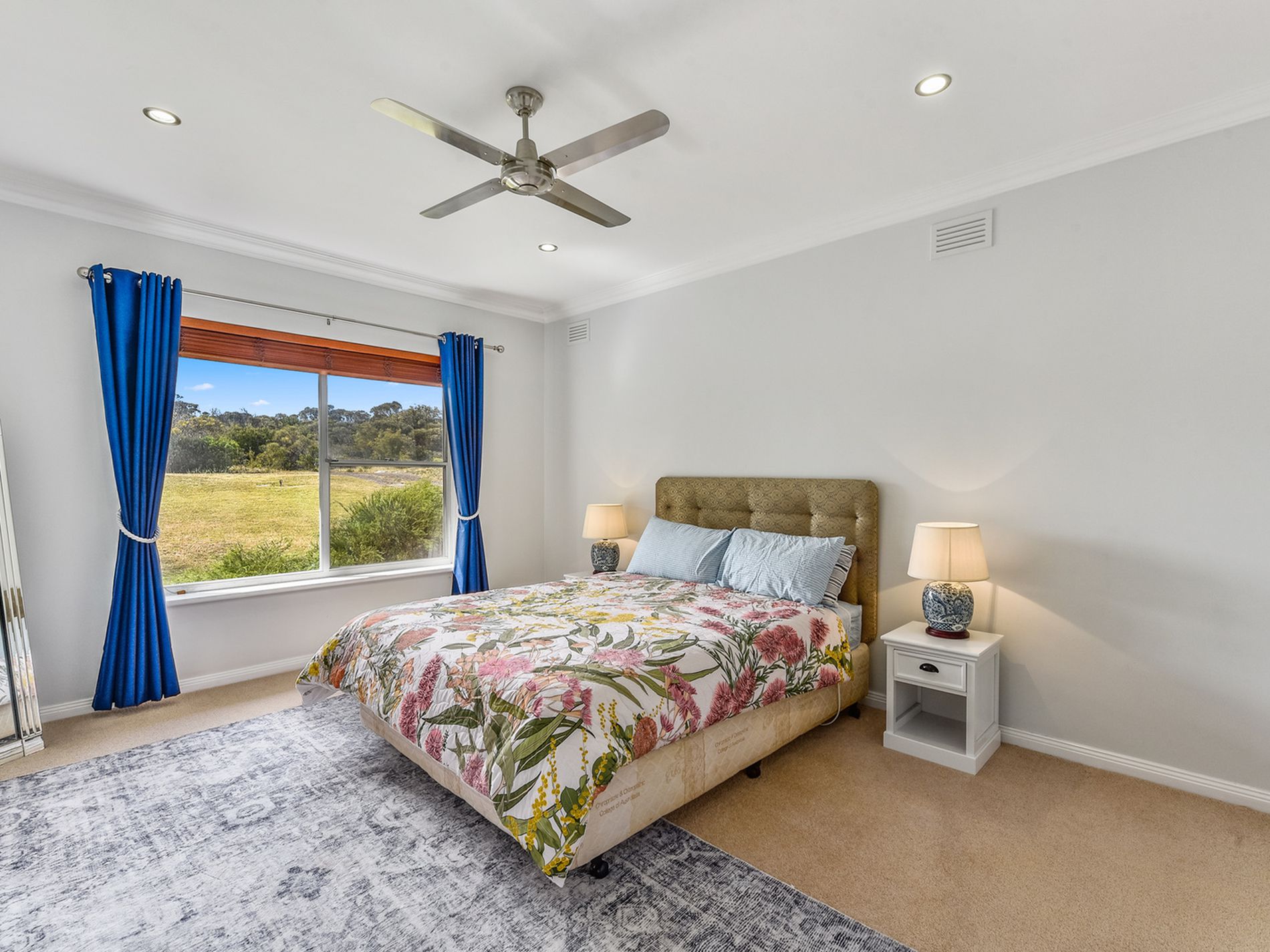 The bedrooms are carpeted, with the master bedroom featuring a convenient, huge walk-in robe. The tastefully renovated bathroom and laundry add a touch of modern elegance to the home. Throughout the property, thoughtful details such as tasteful décor, a slow combustion heater, ceiling fans, and a reverse cycle split system enhance both comfort and functionality.