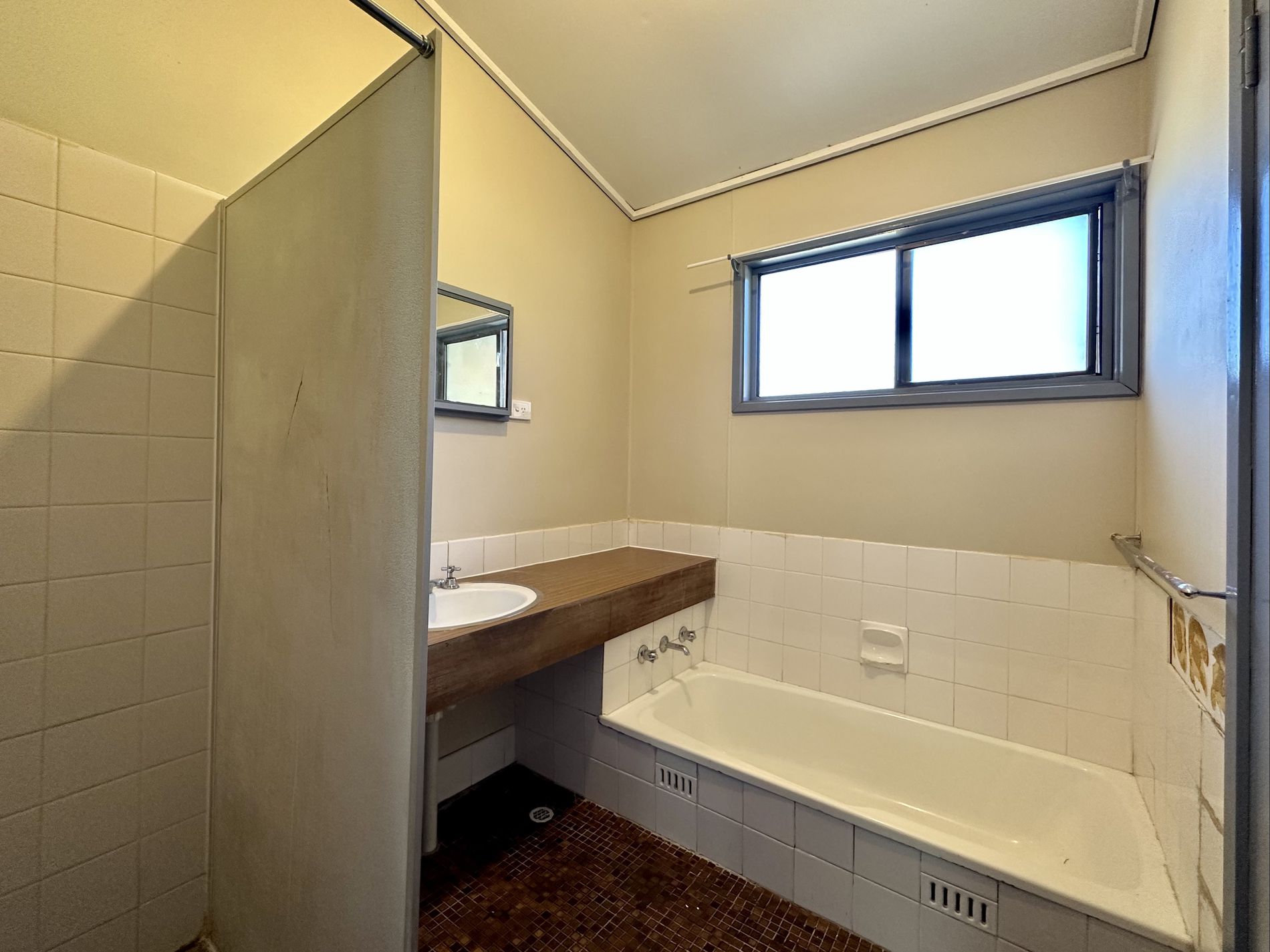 With three bedrooms, each featuring comfortable carpet flooring, the main bedroom includes an open built-in robe for added convenience. The centrally located bathroom offers a well-appointed space with a shower, bath, and vanity area. The two-way W/C provides access from both the bathroom and the laundry.