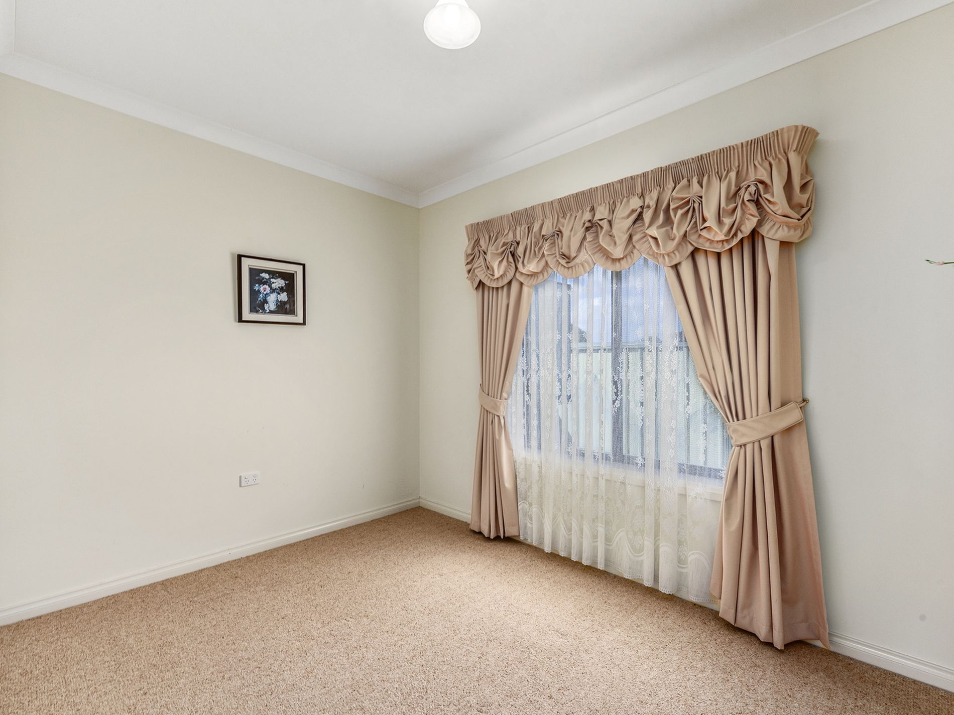 This unit offers two carpeted bedrooms, both equipped with built-in wardrobes for ample storage. Main with R/C unit. The bathroom is spacious and includes a vanity and toilet.. A Third potential small room is good for a single bed or office space.