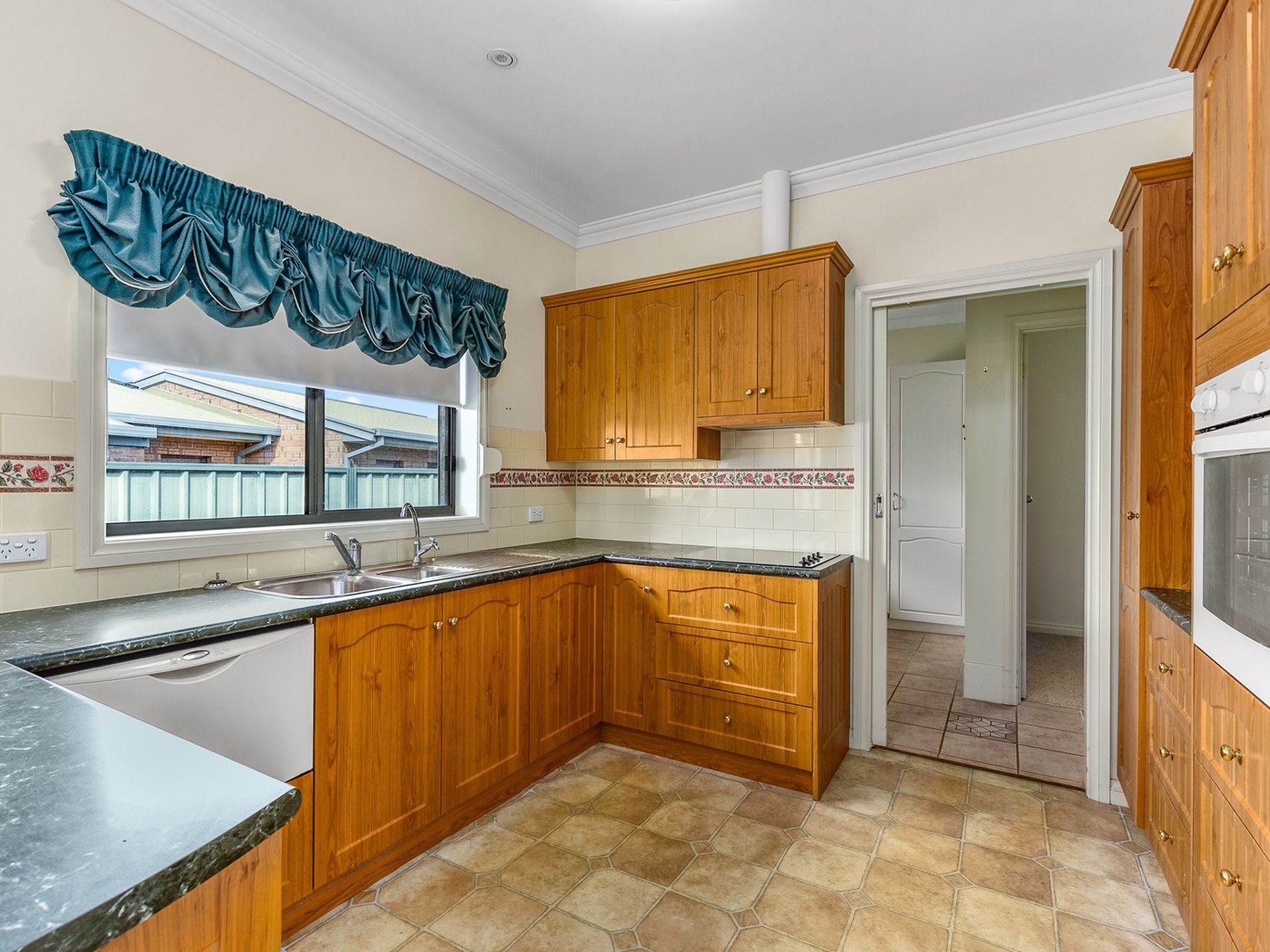 Inside, you'll find an open-plan living space with a comfortable carpeted lounge area. The dining and kitchen areas feature easy-to-maintain lino flooring and are equipped with a reverse cycle air conditioner for year-round comfort. The kitchen itself offers a range of modern amenities, dishwasher, pantry, wall-mounted fan-forced oven and hotplates, a breakfast bench and butler slide space to hide the kettle and toaster.