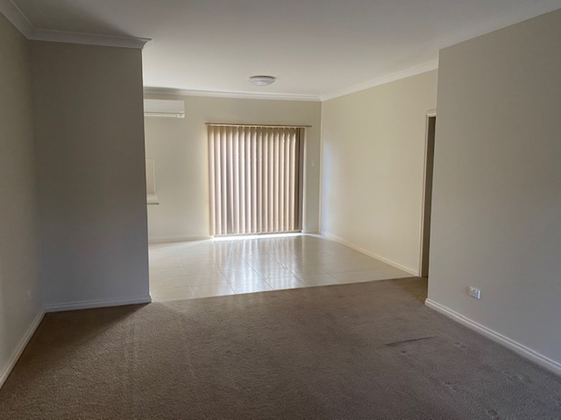 Air Conditioner located in open dining area. Single lock up garage under main roof with access to laundry.