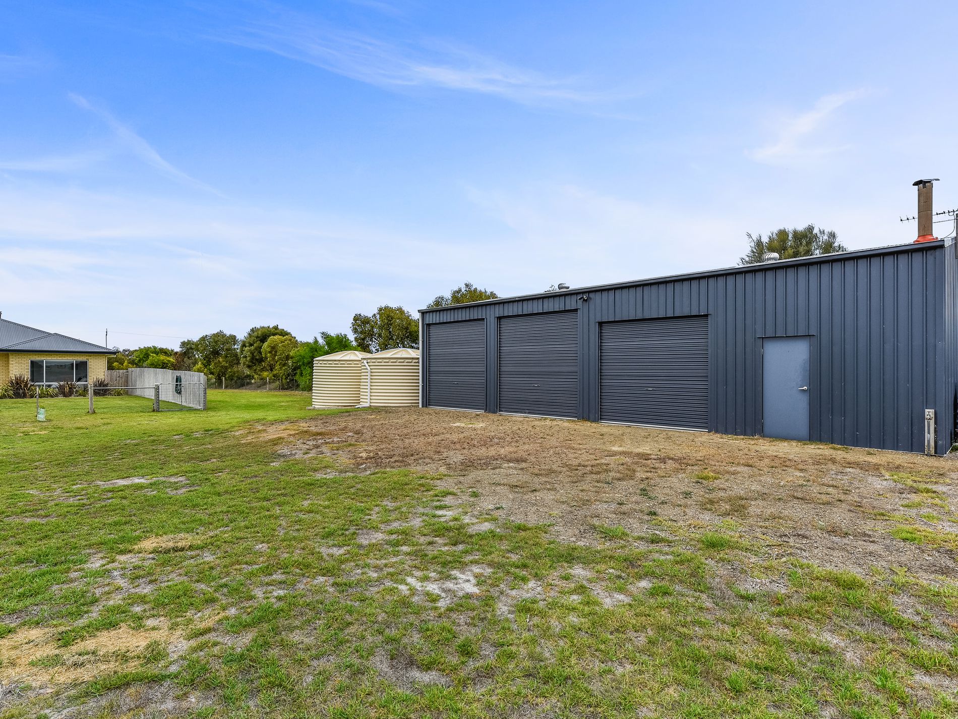 Outside, a spacious 14m x 7m shed with three bays, a toilet, bench, mezzanine loft, and woodshed offers ample storage and parking space, perfect for housing extra cars, boats, and all the kids and adults toys. A new colourbond 9.5m X 4.5m caravan shed with 3.3m X 3.3m door is the icing on the cake. The property is well-equipped for outdoor enthusiasts, with 15,000 gallons of rainwater supplying the house, including toilets, and a bore for garden irrigation. Pop-up sprinklers surround the house for easy maintenance.