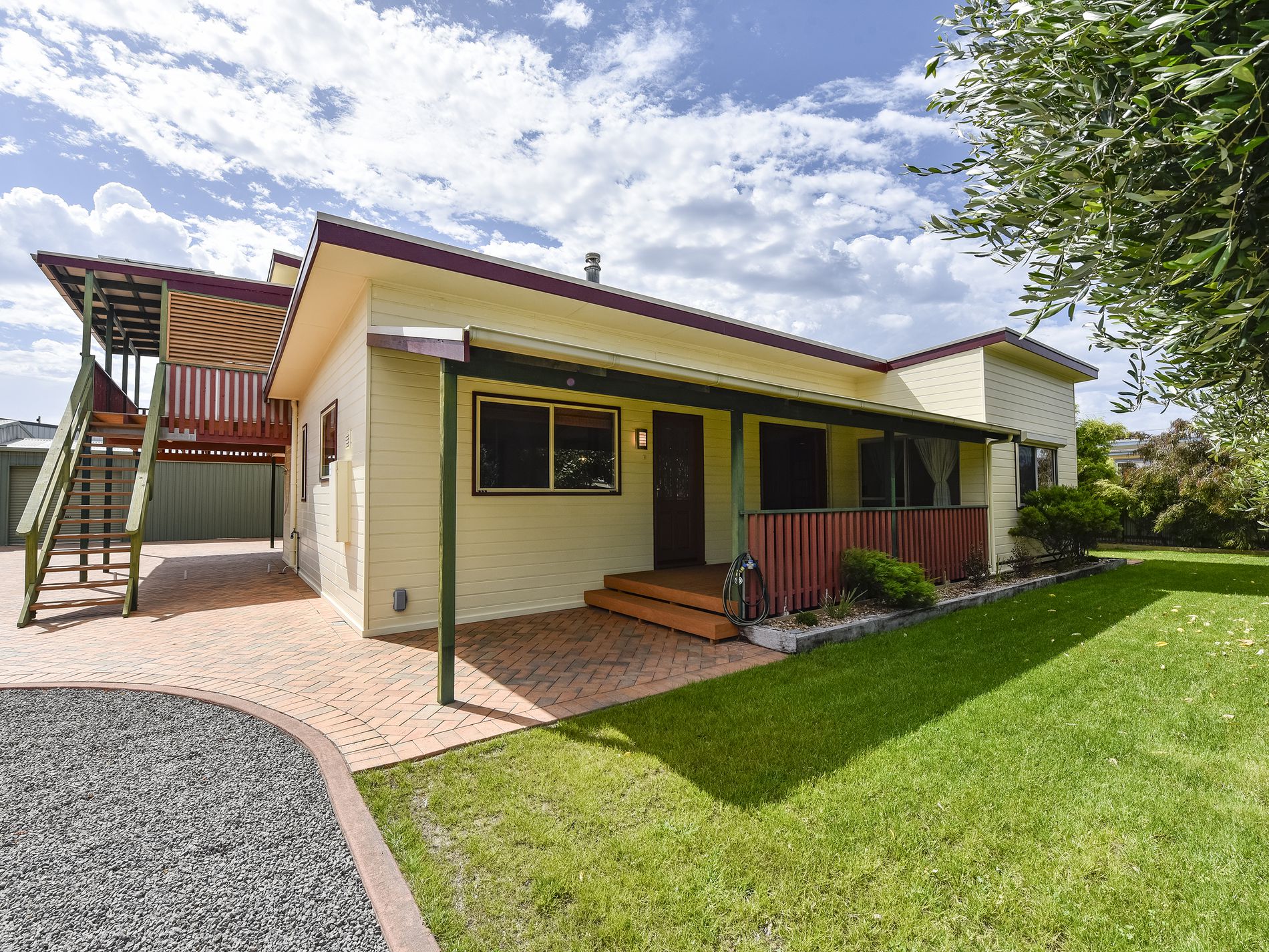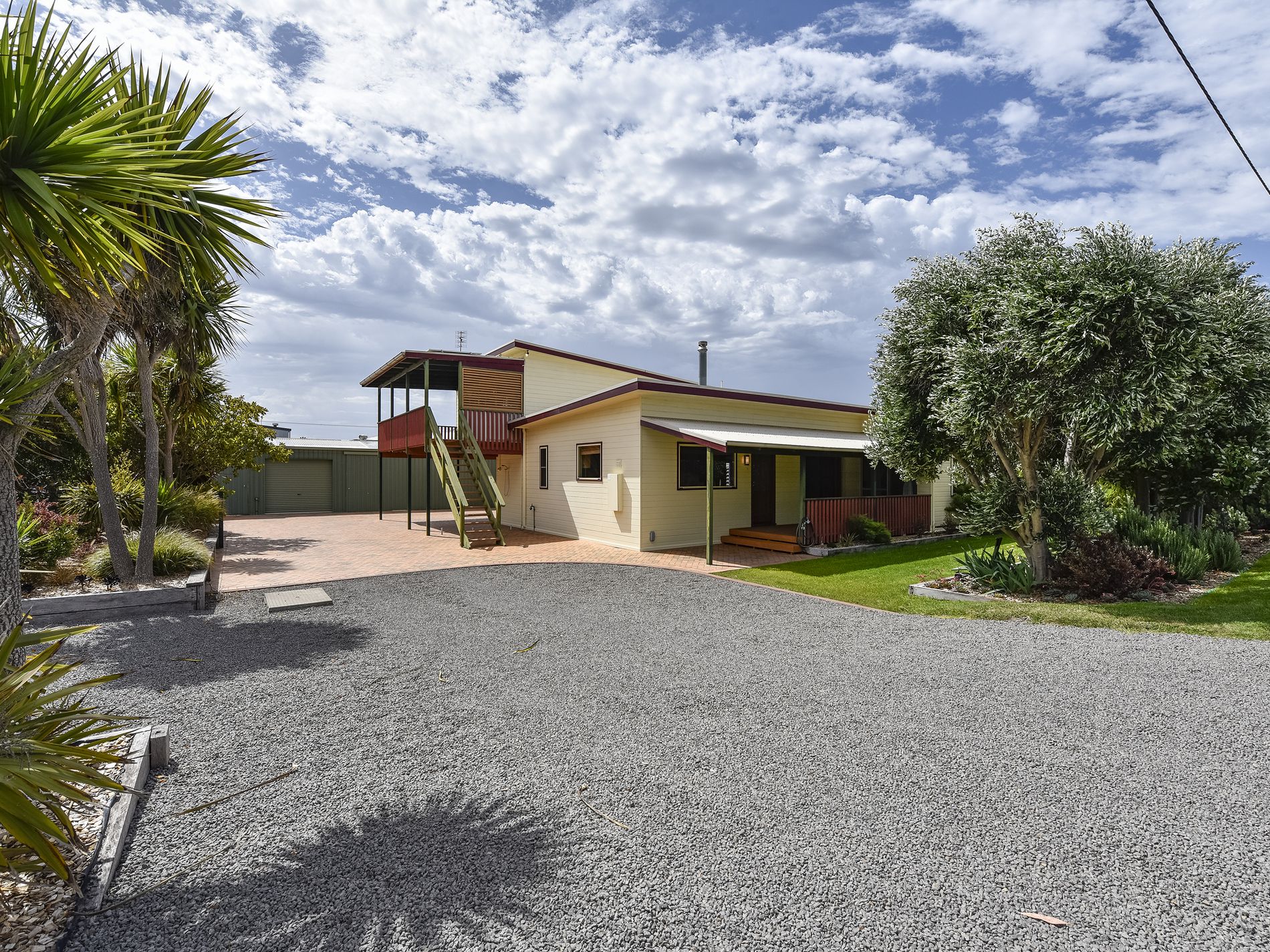The paved undercover area is truly spectacular and offers a large entertainment space all year round. The gardens are well thought out with a lovely variety of coastal hardy plantings. The grassed areas have been recently re seeded and are taking well.