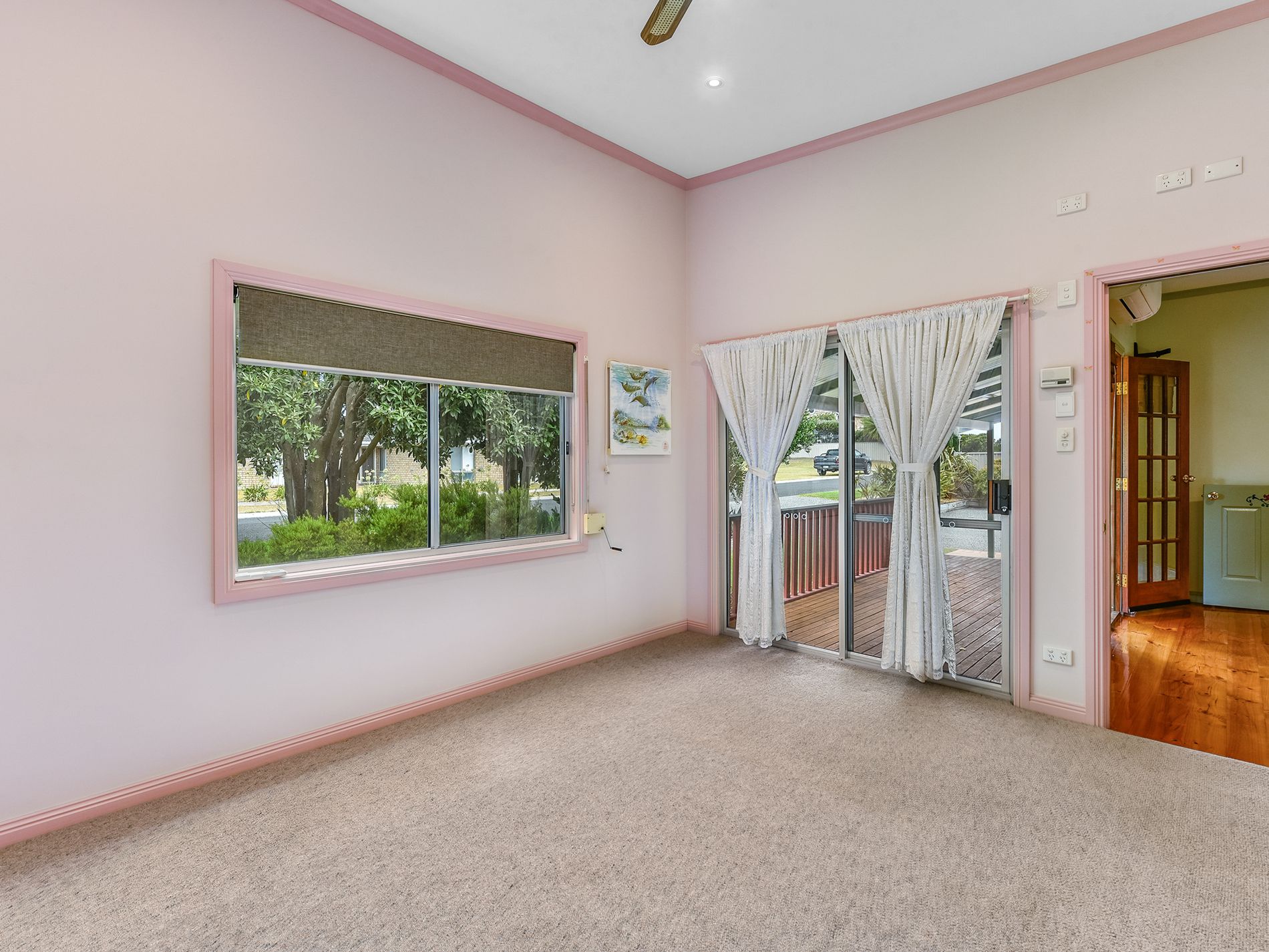 Three well-appointed bedrooms sit to the right of the lounge. The first bedroom includes a reverse cycle air conditioner, roller shutter, and glass sliding door to the front deck. It lends itself to multiple option use from a home-based business, to accommodation, or the perfect teen retreat.