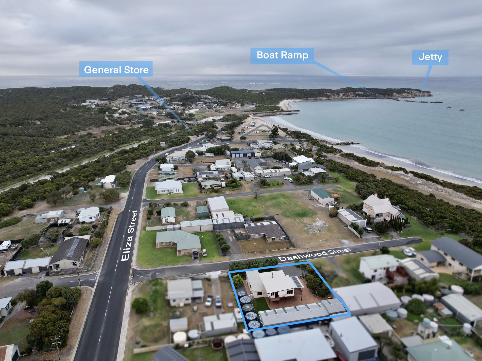 Located in the heart of the town with beach access at the end of the street, the general store a stone’s throw away, and the community club just a short stroll away, you will always be close to the action. Yet the clever design of the home and land also offers shelter and privacy.