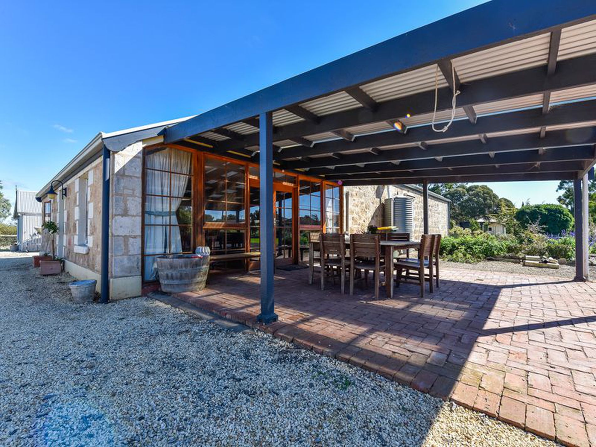 The house is on town supply water as well as a bore and rainwater for drinking. It also has a 6kw solar electricity system.