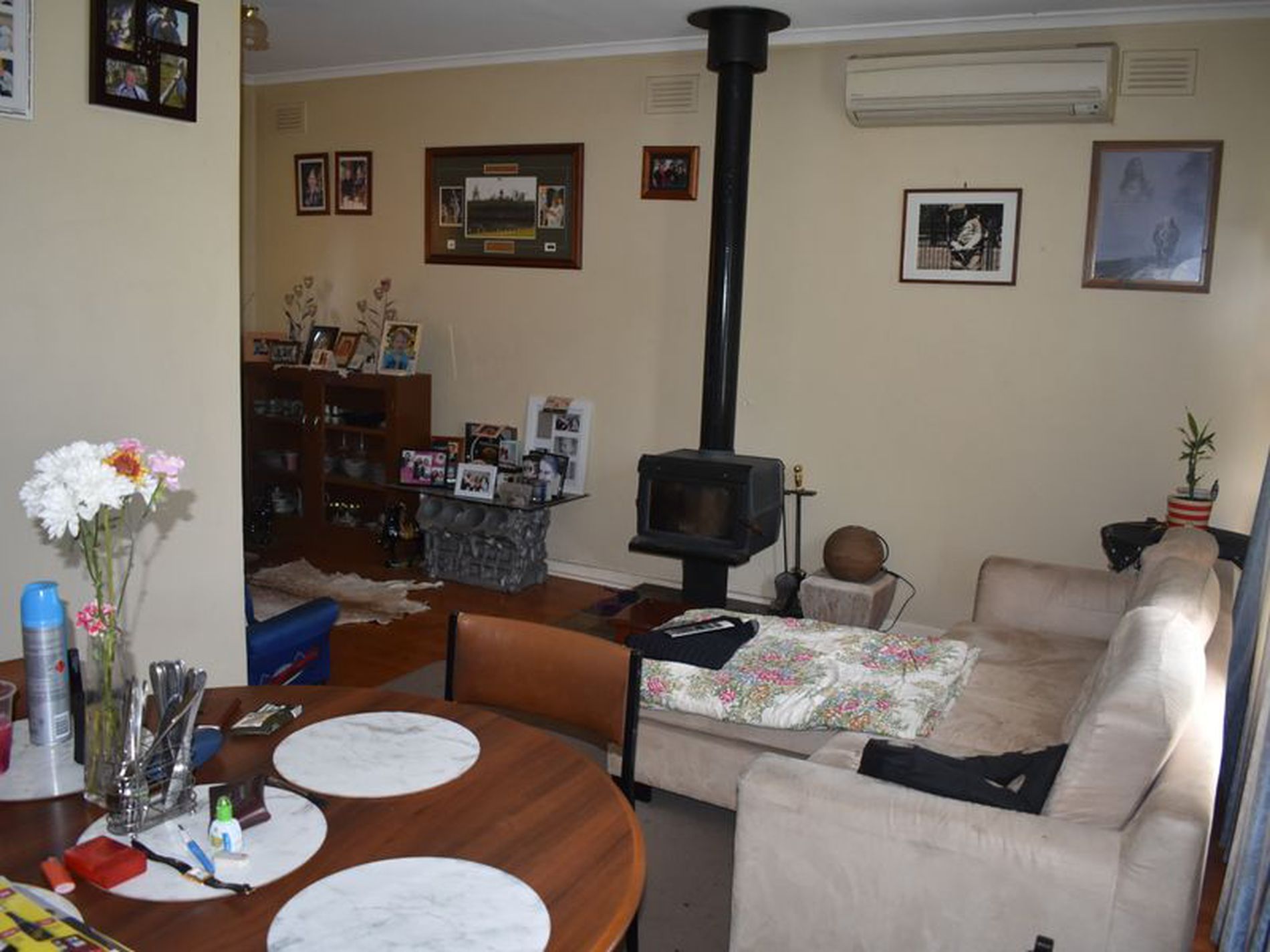 - Reverse cycle air conditioner and slow combustion wood heater heats and cools the home.