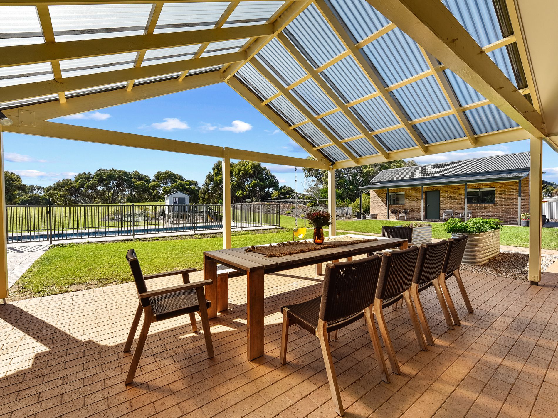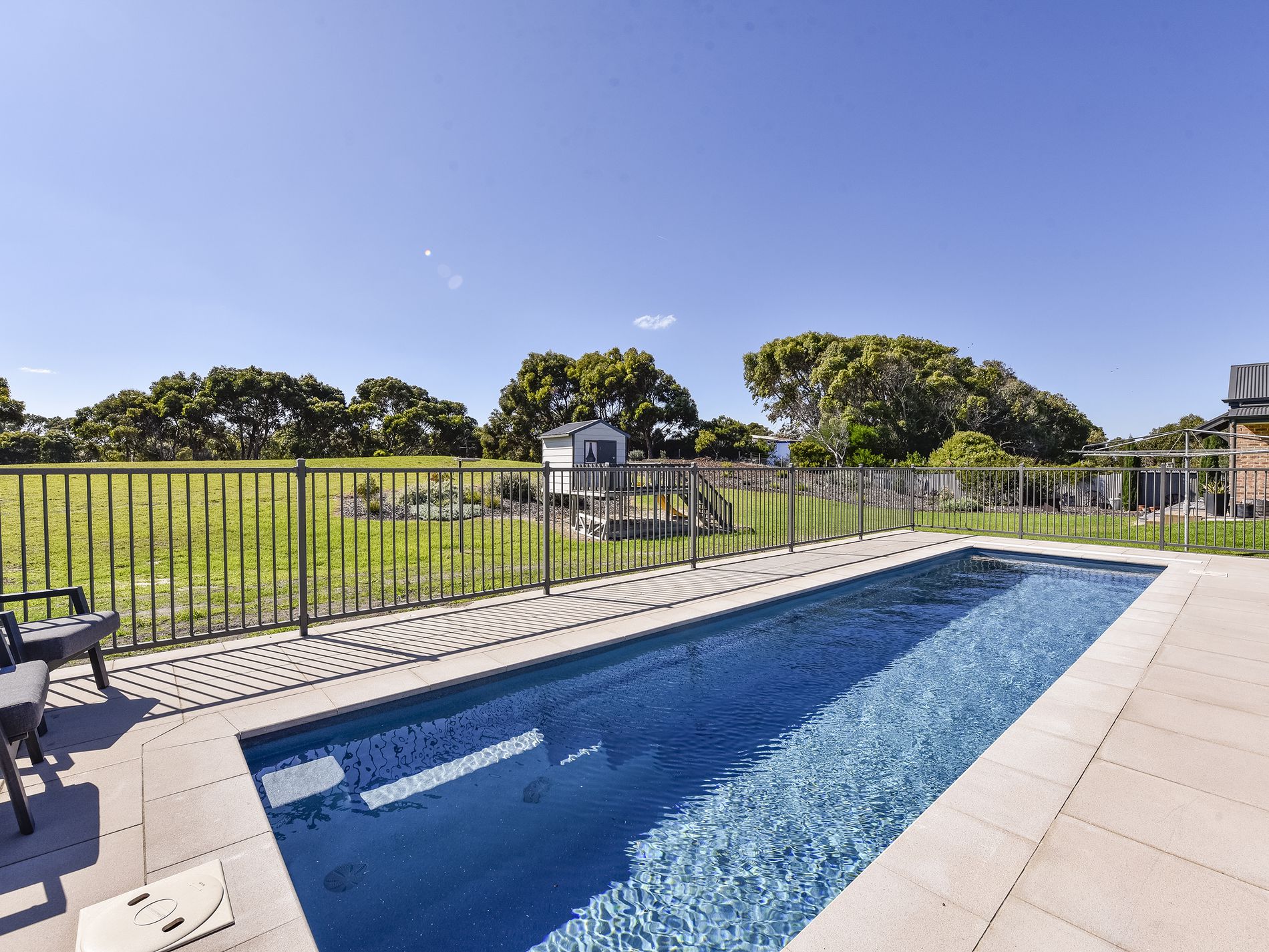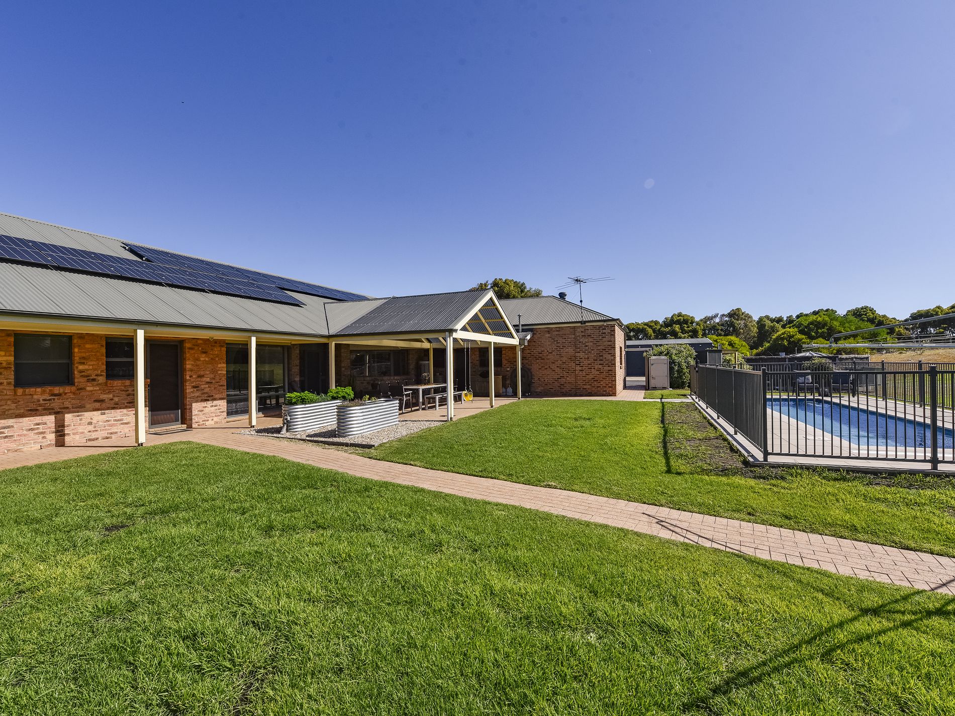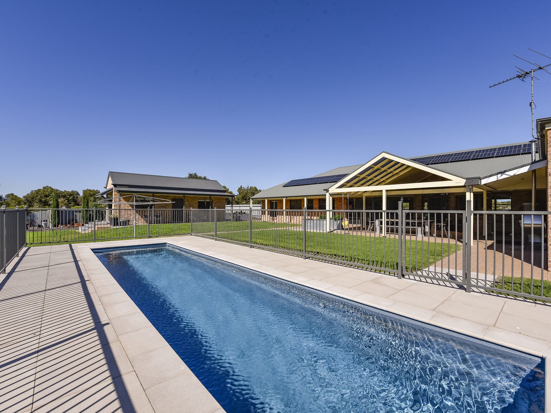 A highlight of the property is the recently completed inground pool, maintained at an optimal temperature of 28-30 degrees Celsius, and powered by solar energy with battery system, ensuring minimal operating costs. [See details below] Third bathroom works well for easy quick access to and from the pool and pergola.