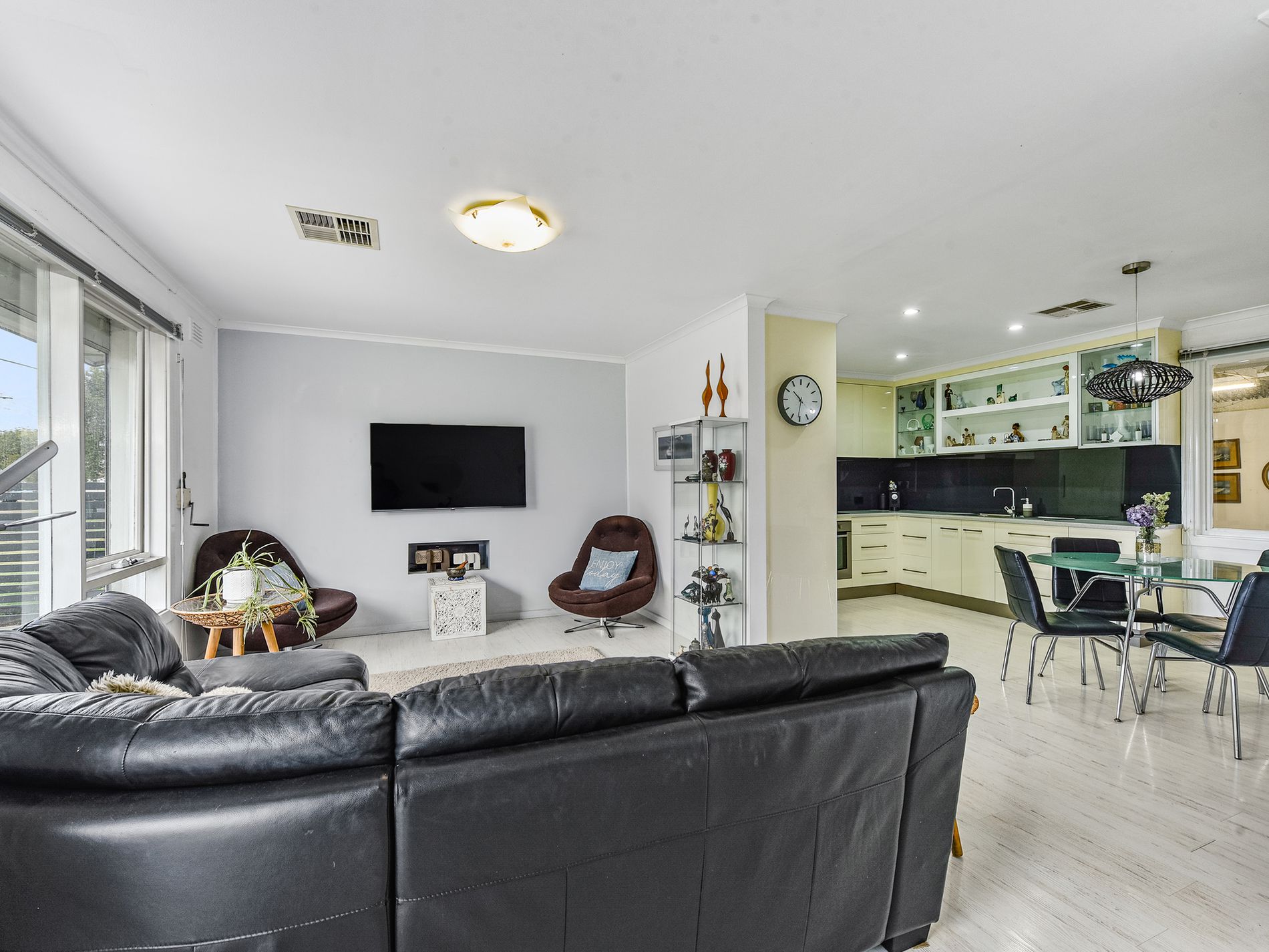 Stepping into the home you are greeted by the open plan living areas. Featuring ducted reverse cycle air-conditioning and hybrid flooring, the area has been cleverly opened up allowing excellent flow through the area but still offering the sense of separation between the lounge and kitchen.